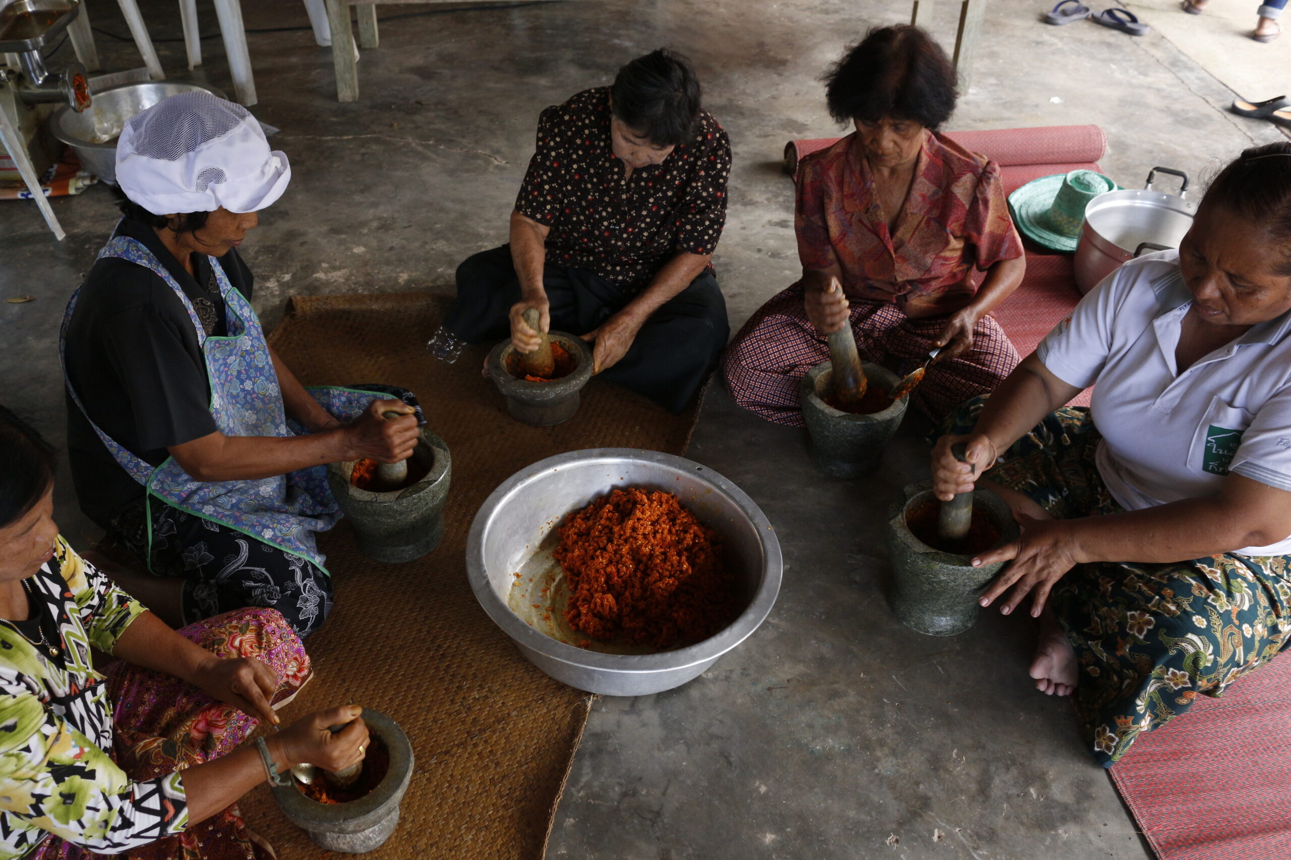 “พวกราทำเกษตรอินทรีย์แบบผสมผสาน ทั้งปลูกผัก เลี้ยงผึ้ง เลี้ยงปลา ในกลุ่มสมาชิกต้องปลูกผักอย่างน้อยคนละ 20 ชนิด แต่ที่นี่ปลูก 30-40 ชนิดได้ เหลือก็เอาไปขาย แกนนำจะเป็นผู้รวบรวมผักแต่ละคุ้มบ้าน บางส่วนก็ส่งวิสาหกิจชุมชน แปรรูป ผักที่นี่ได้เครื่องหมาย Q (มาตรฐานการผลิตที่ปลอดภัย) สาธารณสุขจังหวัดจะมาสุ่มตรวจอยู่เป็นระยะๆ ถ้าใช้ยาฆ่าแมลงเมื่อไหร่ก็ไม่ได้ตรามาตรฐานทันที พอมีตรามารฐาน Q ก็จะทำให้ผู้บริโภคมั่นใจในการเลือกซื้อผลิตภัณฑ์
