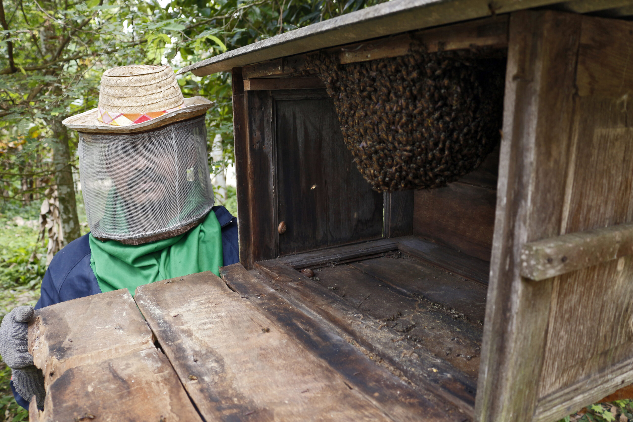 “ตอนนี้ที่นี่มีผึ้ง 40 รัง เราปลูกผักปลอดสารพิษ เลี้ยงปลาดุกเลี้ยงกบไปด้วย ไม่มีการใช้ยาฆ่าแมลง เพราะผึ้งต้องมีห่วงโซ่อาหารที่ปลอดภัย ผึ้งจะมีความรู้สึกไวมาก เราได้เรียนรู้จากคนอื่นขณะเดียวกันก็นำความรู้ที่ทำอยู่ถ่ายทอดให้คนอื่นไปด้วย เพื่อจะได้เกิดความยั่งยืน เพื่อมีคนทำกันมากๆ ผลิตผลที่ได้นอกจากน้ำผึ้งก็จะมีพวกสบู่ โลชั่น ปลาดุกร้า เห็ดสามรส น้ำพริก แม้กระทั่งต้นไม้ เร