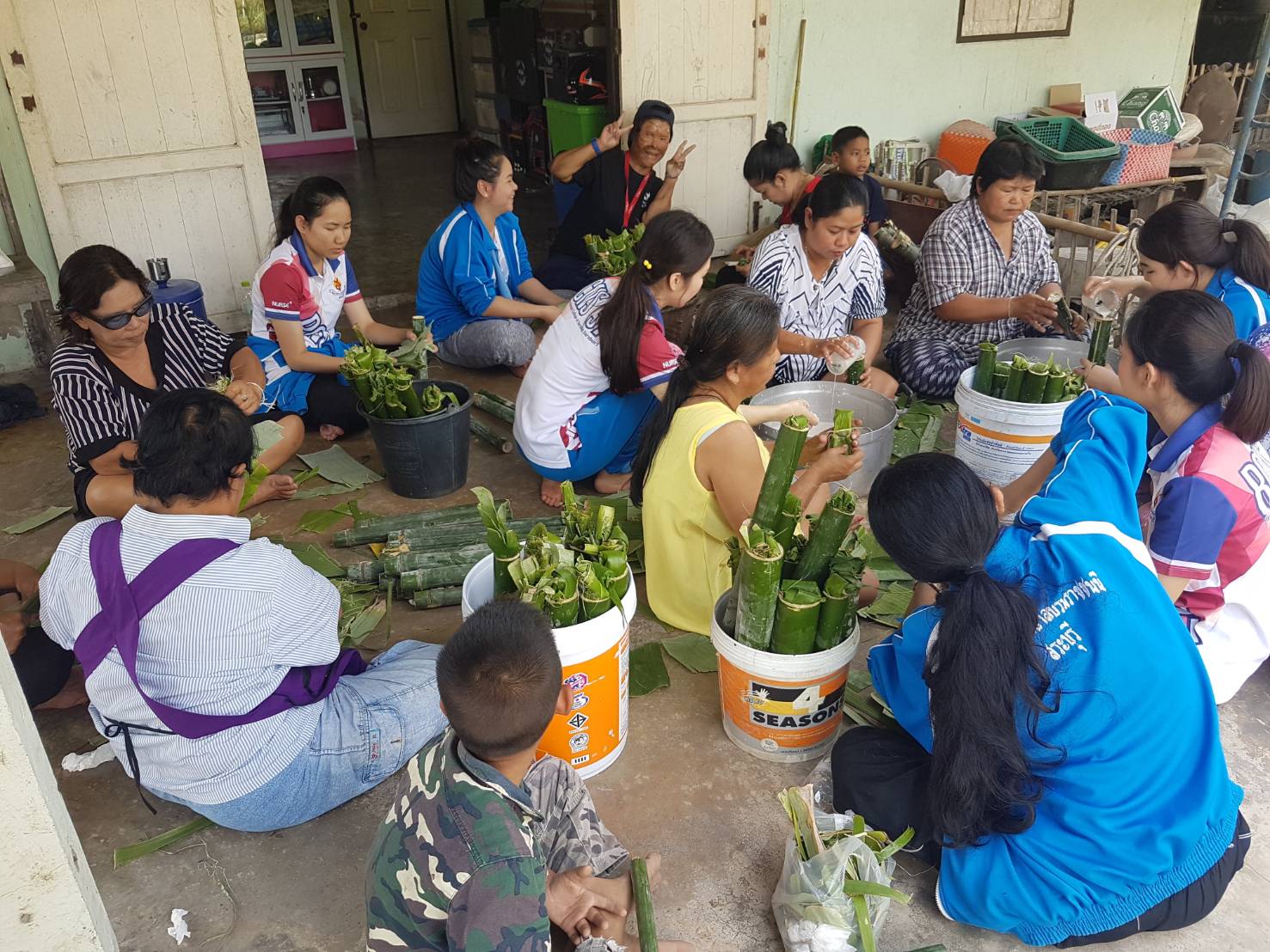 “เรามีของดีก็รู้สึกเสียดาย กลัวจะหายไป เราจึงลองมาช่วยกันรวบรวมภูมิปัญญาด้านการดูแลสุภาพแล้วถ่ายทอดให้กับเด็กๆ กันดู ก็ไปชักชวนแกนนำในชุมชน โดยเฉพาะชมรมผู้สูงอายุให้มาช่วยกัน” ฉวีวรรณ พินิชกชกร พยาบาลวิชาชีพชำนาญการ รพ.สต.วิหารแดง กล่าวถึงจุดเริ่มต้นในการชักชวนผู้สูงอายุและเยาวชนให้มาร่วมกิจกรรมสำคัญครั้งนี้