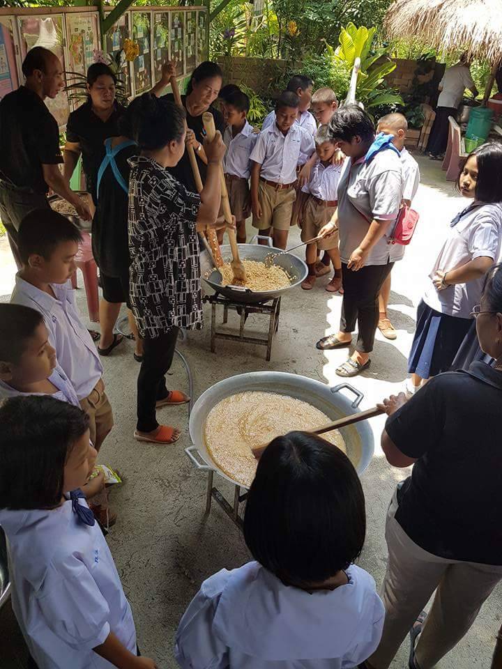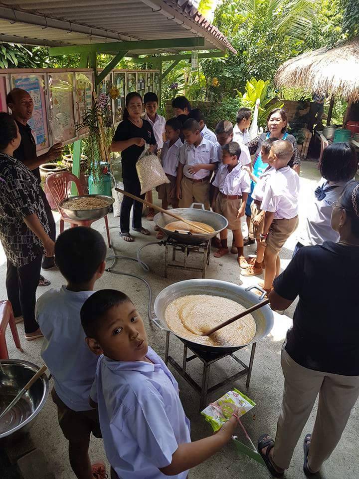 “สิ่งสำคัญที่เราพยายามสอดแทรก คืออาหารเพื่อสุขภาพ ลดหวาน มัน เค็ม ลดความเสี่ยงการเกิดโรคไม่ติดต่อเรื้อรัง เพราะคนสมัยก่อนอาจจะติดรสหวาน มัน เค็ม ไปบ้าง แต่เดี๋ยวนี้เราต้องหันมาดูแลสุขภาพมากขึ้น” หมอฉวีวรรณของชาวบ้านเนินทราย กล่าว