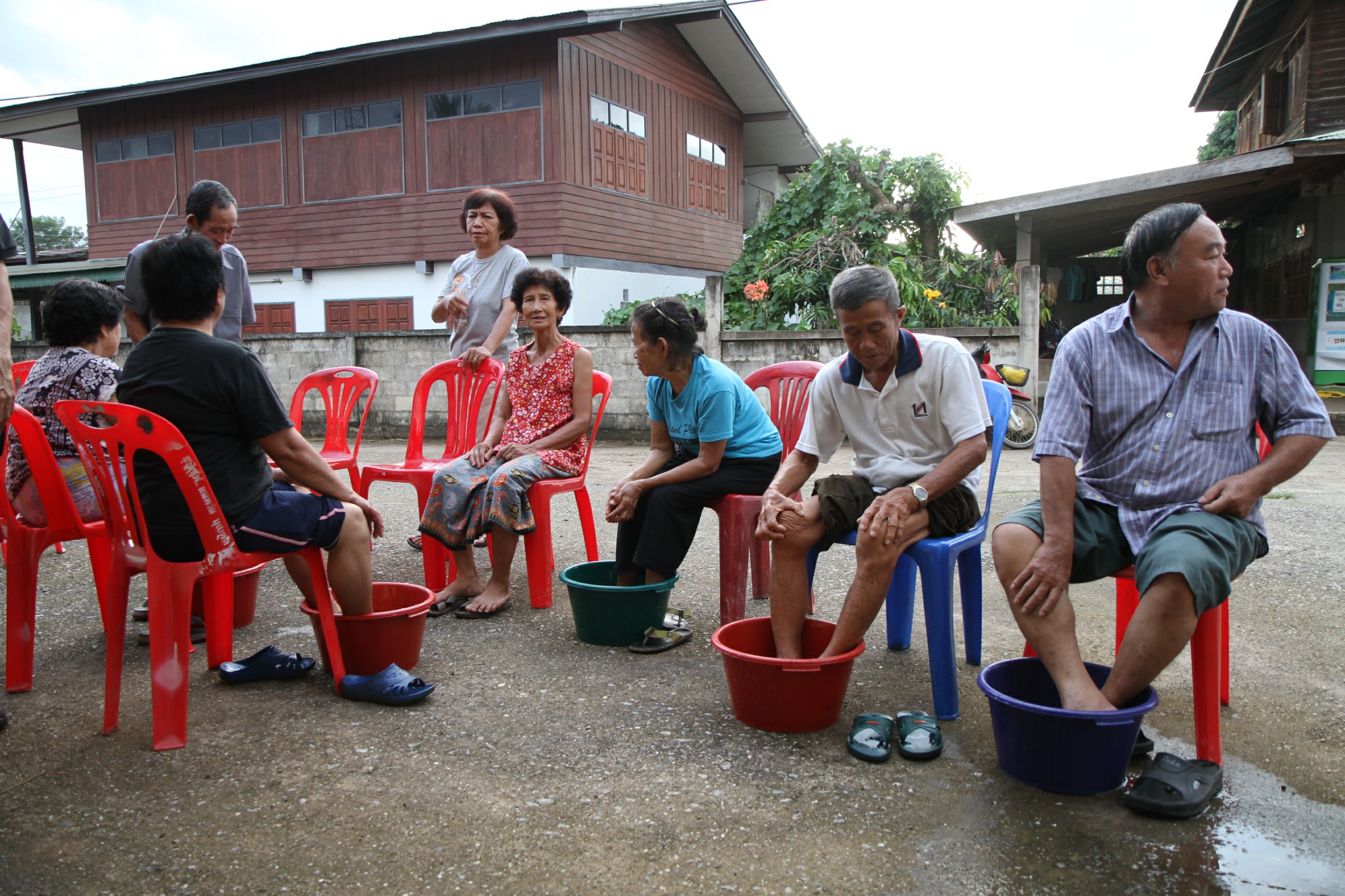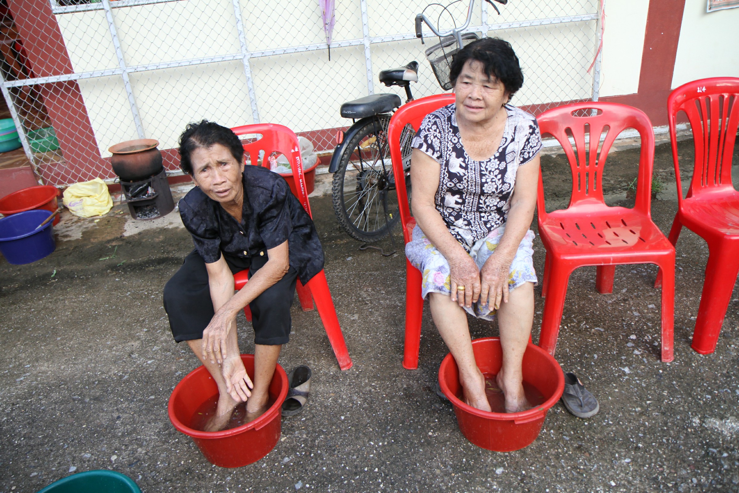 กลิ่นไอของสมุนไพรบ้านๆ อย่างตะไคร้ ไพล ใบมะกรูด ที่คละคลุ้งไปทั่วบริเวณศาลาอเนกประสงค์ กลางหมู่บ้านเมืองหลวง หมู่ 4 ต.เมืองจัง อ.ภูเพียง จ.น่าน เร่งเร้าให้ผู้สูงอายุหลายคนเดินเข้ามารวมตัวกันก่อนเวลาออกกำลังกาย เพื่อจะได้มีเวลาแช่มือ แช่เท้า ในน้ำสมุนไพรก่อนเริ่มต้นรำวงย้อนยุค