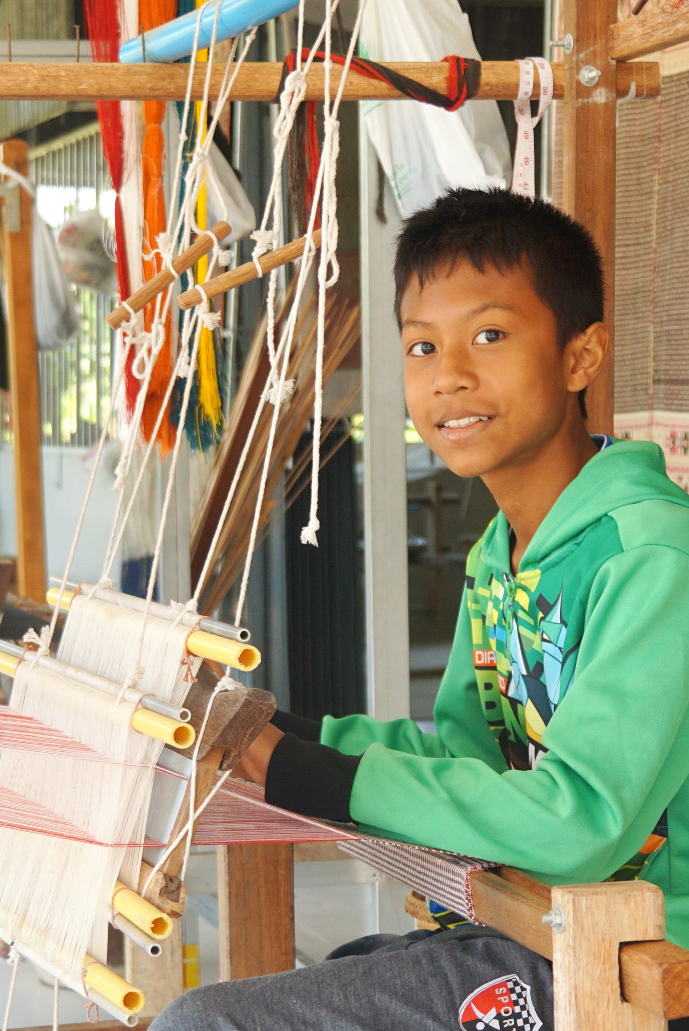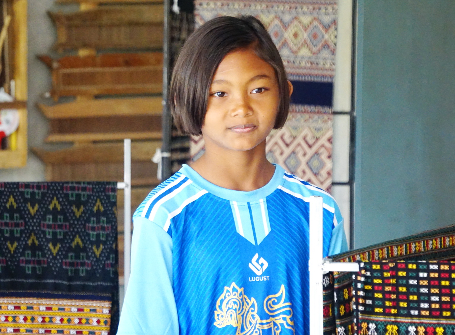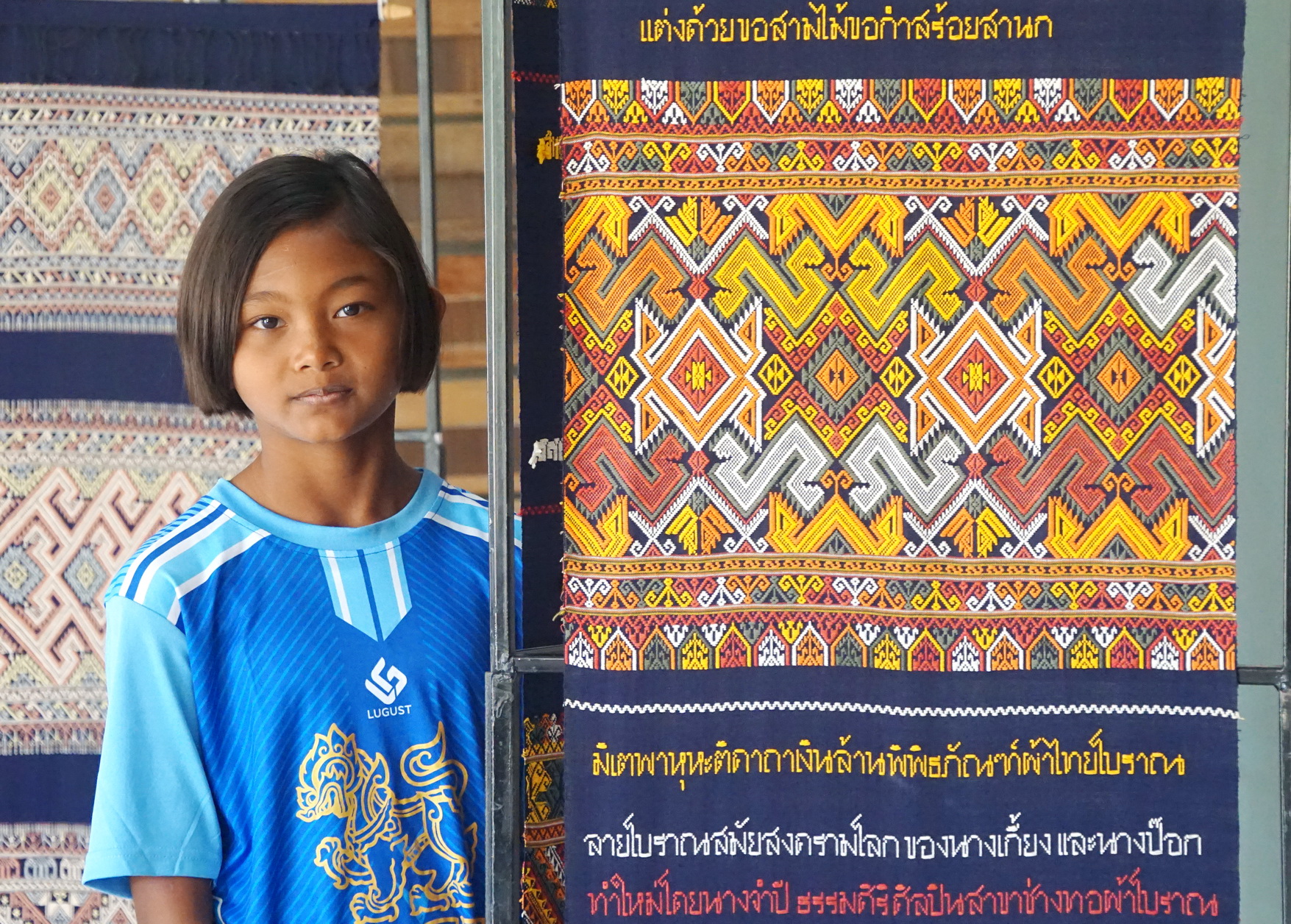 “กับเด็กๆ ป้าก็สอนตามประสาเด็กๆ ให้เขาได้เล่น ให้รู้จักก่อน ไม่ได้คาดหวังว่าจะต้องได้อย่างนั้นอย่างนี้ อย่างหลานอยู่ชั้น ป.5 (ธนกฤต) ม้วนด้ายกรอด้าย เอาด้ายขึ้นกี่ ดึงหูกได้ นี่คือจบการเล่น ตอนนี้เขาเริ่มเป็นแล้วก็ช่วยสอนรุ่นน้องได้ ในรุ่นนี้ที่เห็นมีแววก็หลายคนอยู่นะ” ป้าจำปี ครูภูมิปัญญาเจ้าของรางวัลระดับอาเซียน กล่าว