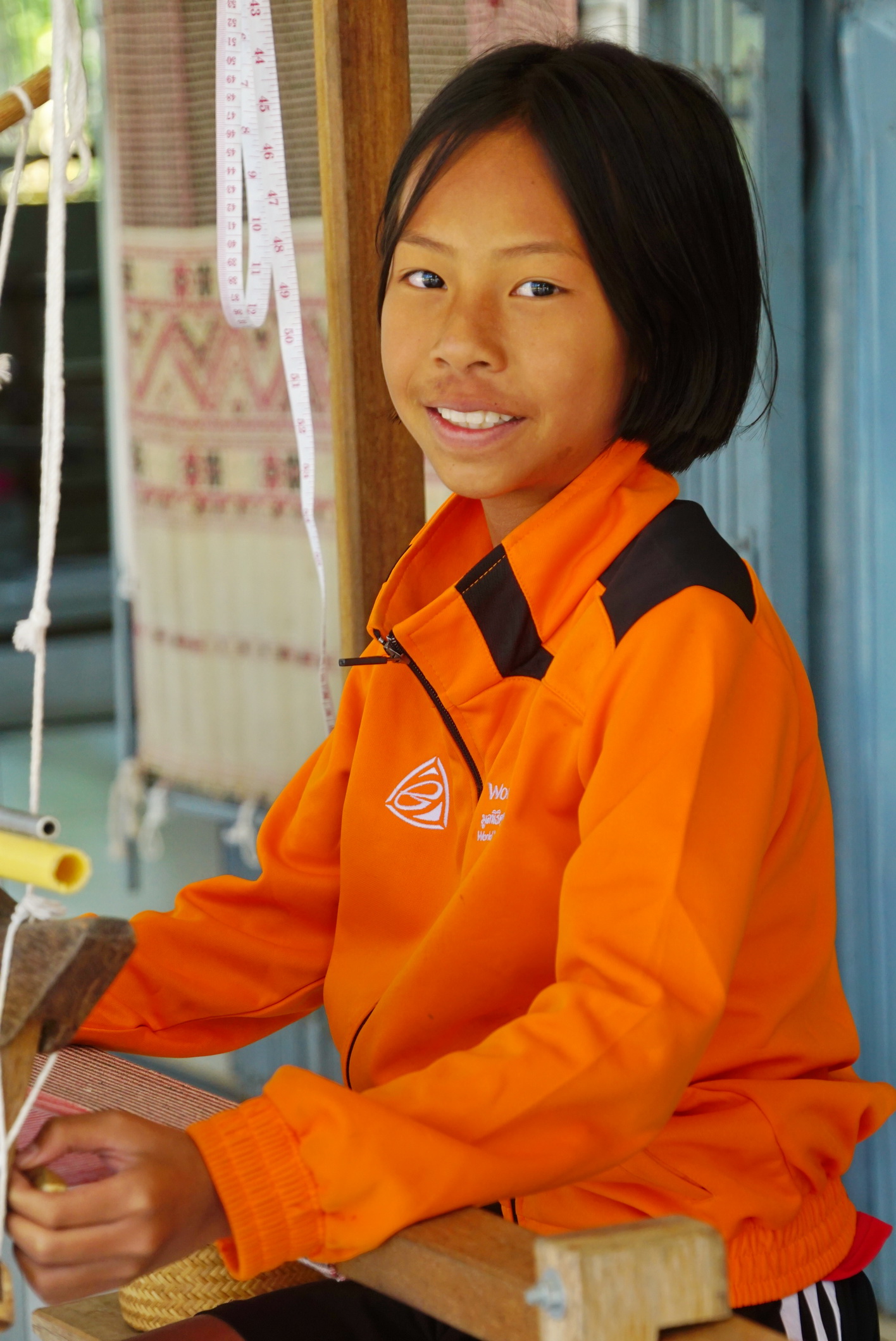 ทางด้าน ด.ญ.พรไพลิน จำนงค์ ชั้น ป.6 แกนนำนักเรียนอีกรายเล่าว่าได้เข้ามาเรียนการทอผ้าตั้งแต่ชั้น ป.4 และรู้สึกชอบการทอผ้า สนใจที่จะมาเรียนรู้เพิ่มเติมในวันเสาร์จนสามารถทอผ้าได้เป็นผืน สามารถช่วยงานดูแลรุ่นน้องเมื่อมาเรียนทอผ้า ตั้งแต่การเตรียมด้าย และอุปกรณ์ต่างๆ สำหรับทอผ้า พัฒนาการที่เรียนรู้จากการทอผ้าทำให้มีโอกาสได้เดินทางไปแลกเปลี่ยนความรู้กับกลุ่มอื่นๆ ในโอกาสต่างๆ อีกด้วย