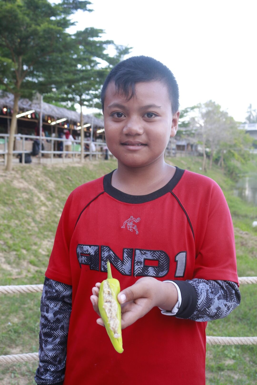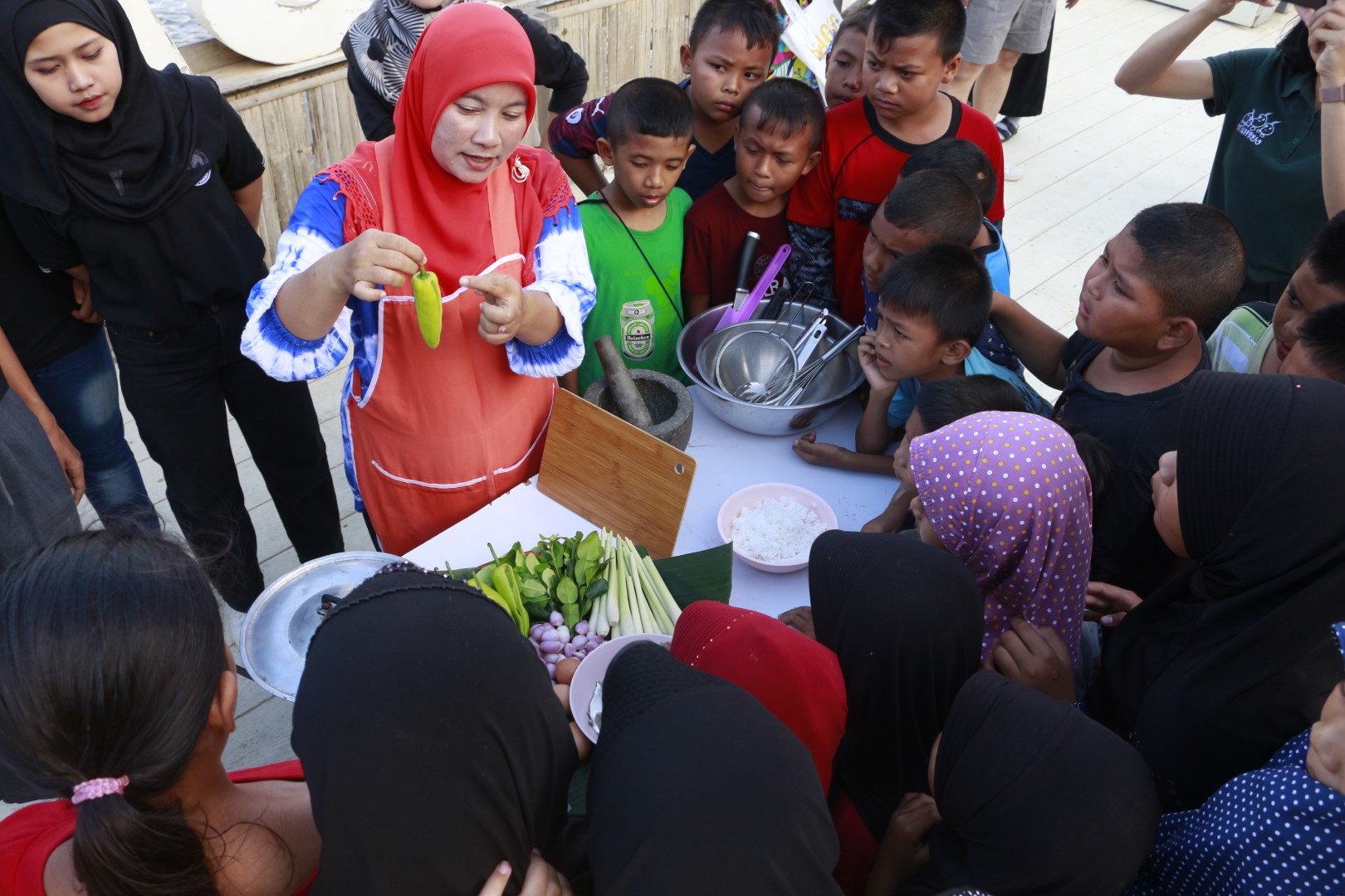 “ผมเคยทำแต่ข้าวผัด เคยช่วยแม่ทำครัว พอผมมาดูมาลองทำแล้วคิดว่าทำได้ อยากกลับไปชวนแม่ลองทำดู” “น้องไซฟูร์” ด.ช. มูอัมหมัดไซฟูร์ ปาตง นักเรียนชั้น ป.6 ที่ได้มาเรียนรู้การทำซอเลาะดาลออย่างใกล้ชิดและได้ลงมือทำทั้งการโขลกเนื้อปลาและยัดไส้พริกบอกถึงความตั้งใจ