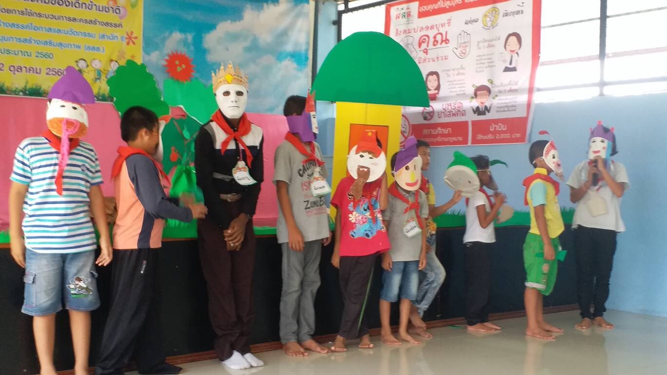 กิจกรรมทำหน้ากากที่ตัวเองชอบและอยากเป็น ซึ่งกิจกรรมนี้ทำให้ได้รู้ถึงบางสิ่งบางอย่างที่ตัวเด็กเก็บไว้ข้างใน โดยนางอำไพพิศ เชื่อว่า ข้อมูลบางเรื่องพูดตรงๆ เขาไม่อยากเล่า แต่ถ้าผ่านหน้ากากบังไว้ บางเรื่องที่ติดอยู่ในใจเขาจะพูดออกมาได้ ซึ่งหน้ากากเป็นเครื่อมือช่วยให้เรารู้ความนึกคิดของตัวเด็ก เราไม่มีบทละครให้ ต้องเล่นสดจากชีวิตของเขา แน่นอนที่เขาพูด คือ สิ่งที่มาจากชีวิตของเขามาผูกเป็นละคร