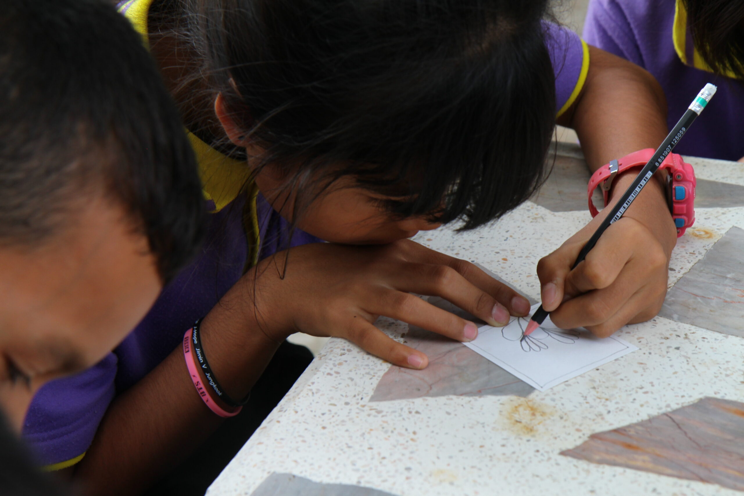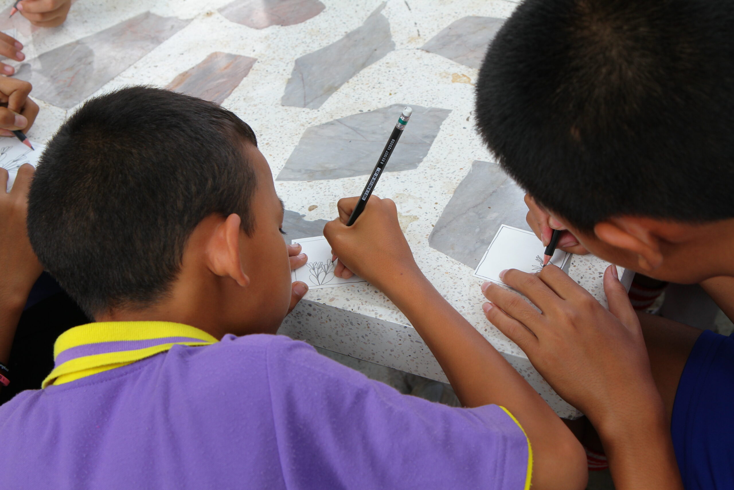 ก่อนที่จะเริ่มทำกิจกรรมในแต่ละครั้ง สิ่งแรกที่น้องๆ ต้องทำคือ จัดการใจตัวเองให้สงบก่อน ด้วยการวาดภาพเซนแทนเกิล