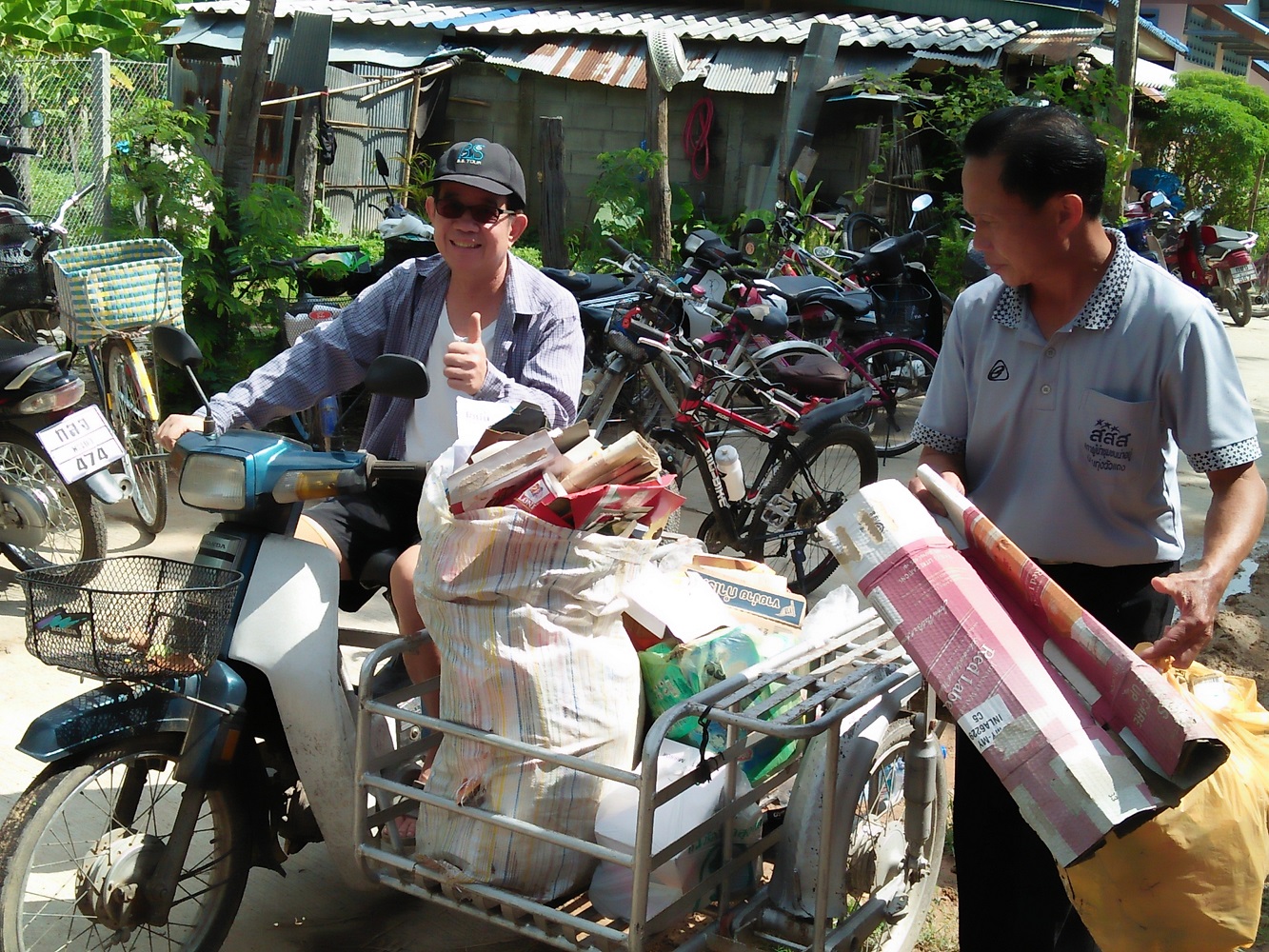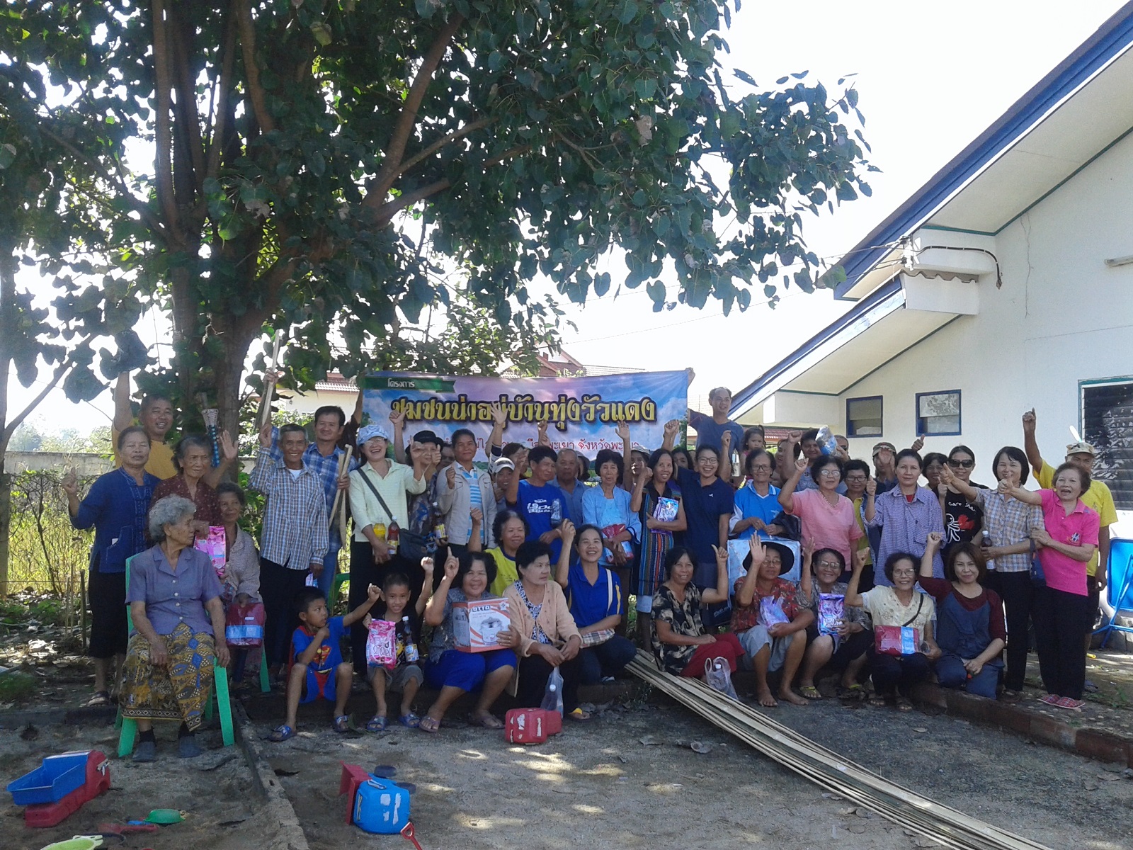 “โชคดีที่ได้ทำโครงการชุมชนน่าอยู่ กับทางสำนักงานกองทุนสนับสนุนการสร้างเสริมสุขภาพ (สสส.) สำนัก 6 จึงได้งบประมาณในการจัดอบรม ให้ความรู้แก่แกนนำ และชาวบ้าน ในการคัดแยกขยะ ตลอดจนทำกิจกรรมต่างๆ ที่สร้างสรรค์ ทำให้ชาวบ้านสามารถคัดแยก จัดการขยะ และมองเห็นว่าขยะสร้างรายได้ เริ่มจากขยะบุญ ที่ให้ชาวบ้านคัดแยกขยะมาบริจาค แล้วใช้เครื่องจักรบดอัด พอขายได้ก็จะมีเงินกองกลางที่นำไปใช้ในกิจการของชุมชน เช่น ซื้อของเยี่ยมผู้ป่วย ผู้สูงอายุ และตอนนี้กำลังเริ่มต้นธนาคารขยะ ที่ทุกสิ้นปีจะมีการปันผลกำไรจากการขายขยะ และผลิตภัณฑ์ที่แปรรูปจากขยะ คืนให้สมาชิก ทำให้ทุกคนมองเห็นประโยชน์จากขยะได้ชัดยิ่งขึ้น ต่อไปก็จะไม่ทิ้งเรี่ยราดอีก” กำนันพายัพ อธิบาย