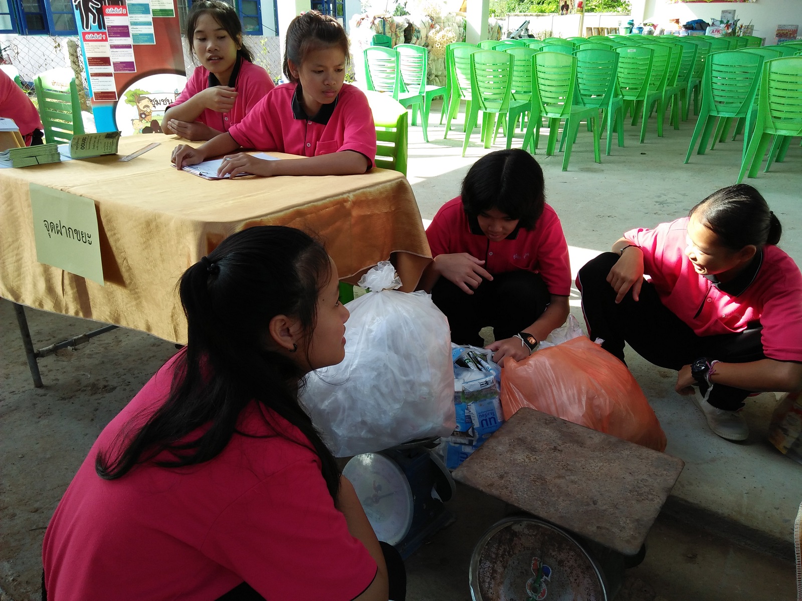 “ดำเนินการได้ระยะหนึ่งก็พบว่ายังมีขยะพลาสติก ที่มีปัญหาอยู่ จึงรณรงค์ให้ชุมชนเลิกใช้พลาสติก โฟม ที่มีอยู่แล้วก็ให้คัดแยก โดยประสานกับบริษัทเอกชนข้างนอกเข้ามารับซื้อ ตอนแรกชาวบ้านอ้างทำไม่ได้ เพราะไม่เคยทำมาก่อน ผู้นำต้องทำให้เห็นเป็นตัวอย่าง และปรับเปลี่ยนจากขยะบุญ มาเป็นธนาคารขยะ เปิดทุกวันที่ 15 ของเดือน ซึ่งชาวบ้านจะหิ้วขยะจากบ้านมาฝากถึงที่ โดยมีเยาวชนต้นกล้าความดี ร่วมกับสภาผู้นำฝ่ายบริหารจัดการขยะ มาคอยรับขยะที่ลานธนาคารในหมู่บ้าน ช่วยลดภาระลงได้มาก” ลออ กล่าว