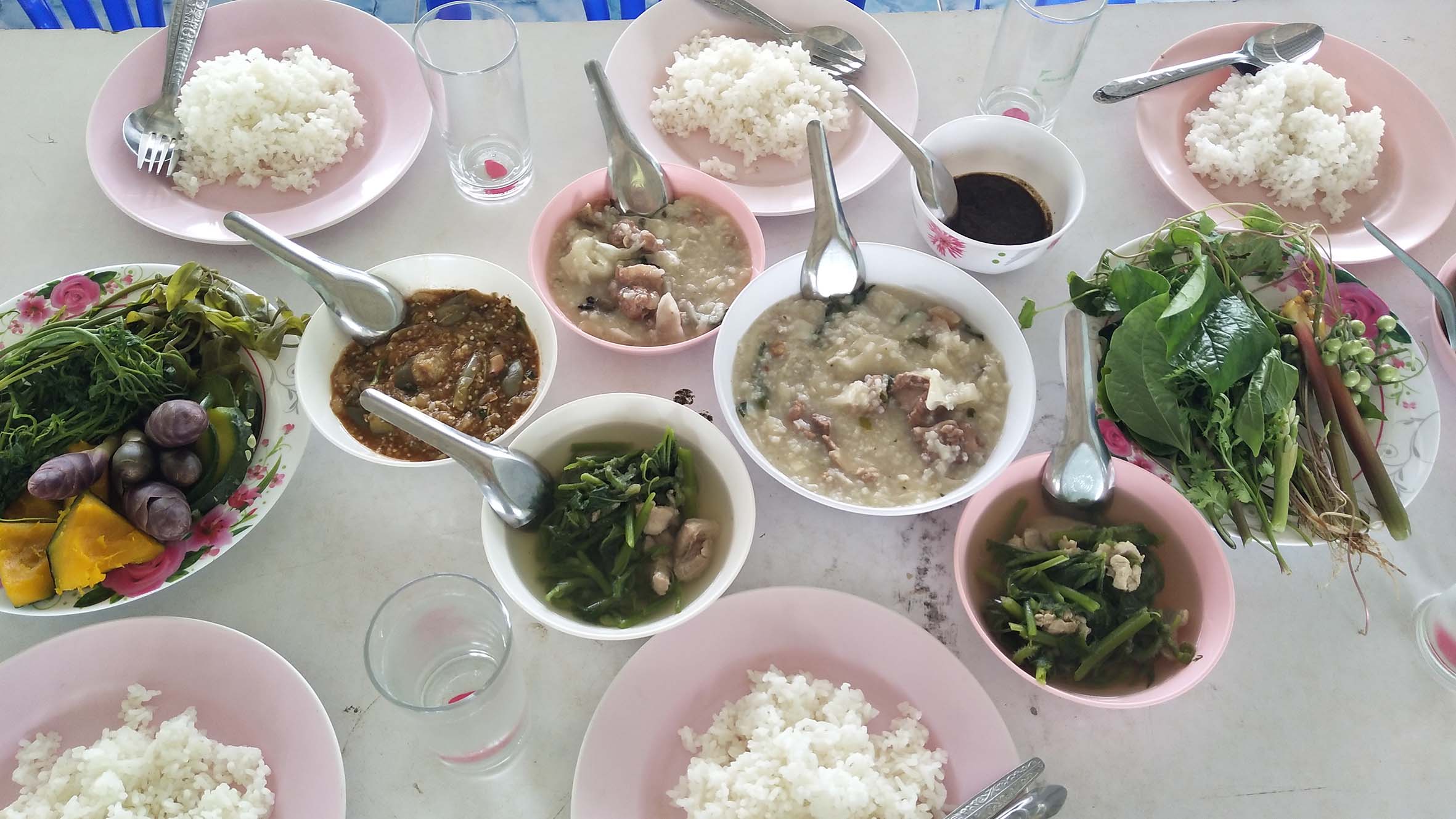 “สังเกตว่าตอนหลังเด็กๆ ชอบกินอาหารที่เป็นเมนูท้องถิ่นมากขึ้น โดยเฉพาะข้าวเบ๊อะ แต่ละเดือนต้องทำเมนูนี้ไม่ต่ำกว่า 2 ครั้ง ในสมัยก่อนเมื่อเกิดภาวะข้าวยากหมากแพง ชาวบ้านจะทำข้าวเบ๊อะ ด้วยการนำข้าวมาต้มให้เละ มีผักหรือเนื้ออะไรก็ใส่ลงไป อย่างใบแมงลัก หน่อไม้สด หมู เป็นอาหารอ่อน กินง่าย คล้ายข้าวต้ม” ครูสุวรรณี เล่า