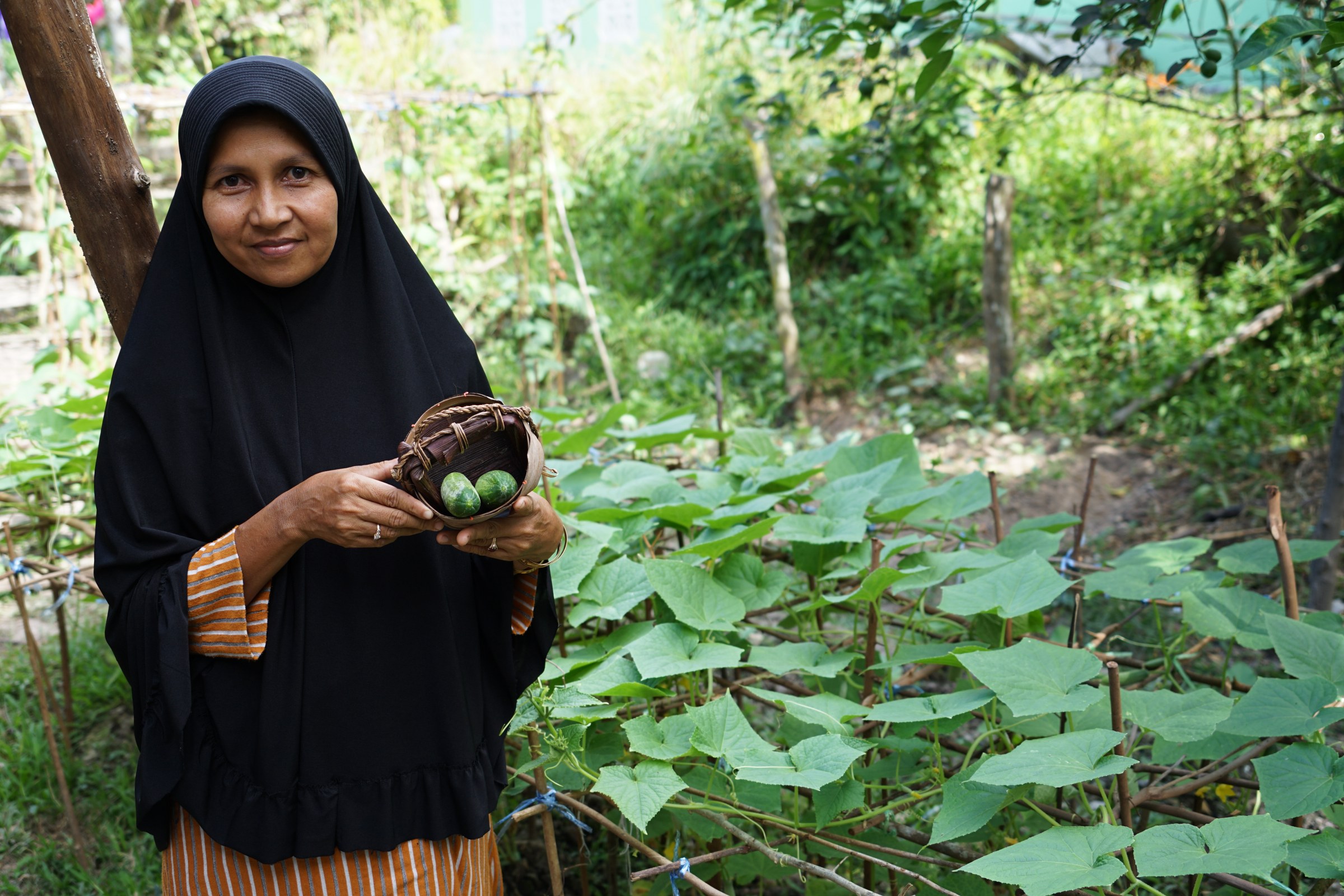 โดย “นางซีซะห์ มะดีเยาะ” ผู้ที่ชนะการแข่งขันการปลูกผักจากโซนกัมปง เล่าให้ฟังอย่างภูมิใจว่า “มีพื้นที่ปลูกผักเล็กๆ แค่ครึ่งงานแต่สามารถประหยัดรายจ่ายในแต่ละวันไปได้ 40-60 บาท โดยปลูกทั้งคะน้า ผักกาด บวบเหลี่ยม กวางตุ้ง ฯลฯ และผักสวนครัวอื่นๆ อีกมากมาย ซึ่งการกินผักที่ปลูกเองปลอดภัยไร้สารเคมีนั้น มีประโยชน์ต่อร่างกาย ช่วยลดรายจ่าย ทำให้มีสุขภาพดี”