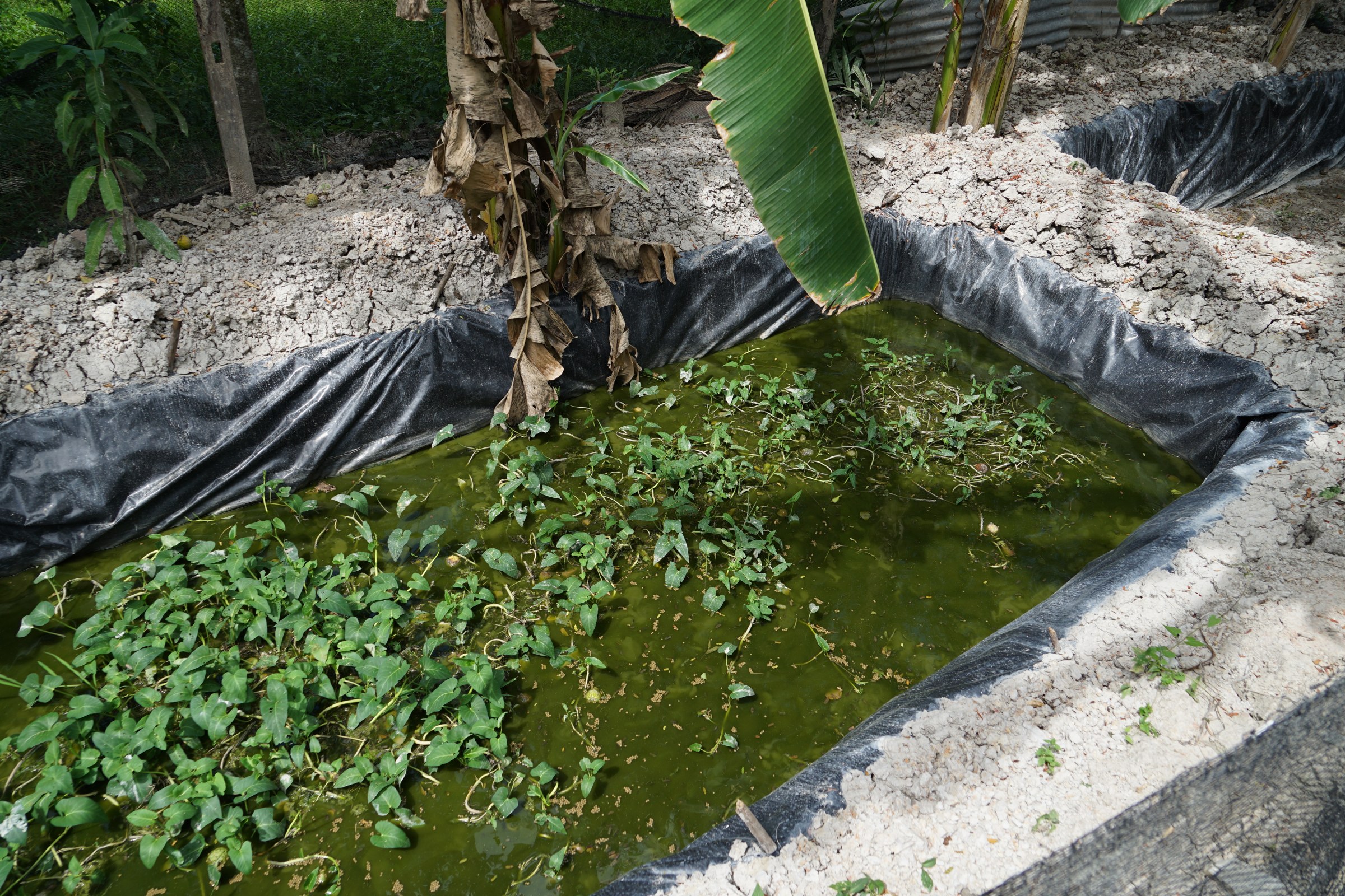 นางกรรฐิมาณี มะเดง เกษตรกรต้นแบบวิถีพอเพียง และที่ปรึกษาด้านการปลูกผักปลอดสารพิษของโครงการฯ เล่าให้ฟังว่าหลังบ้านมีพื้นที่ประมาณ 1 ไร่ ทำสวนผสมผสานแบบเกษตรพอเพียงมานานหลายปีแล้ว แต่คนส่วนใหญ่ในชุมชนไม่ค่อยรู้ เพราะมองจากถนนเข้ามาไม่เห็น โดยปลูกทุกอย่างที่กินและขายได้ทั้ง กล้วย, มะนาว, มะขาม, สะตอ, มะม่วง, ตาล, หมาก, ชะอมฯลฯ มีบ่อเลี้ยงปลาดุก และแปลงปลูกพืชผักสวนครัวอีกนับสิบชนิด และก็เพิ่งเก็บมะนาวส่งขายที่ตลาดไป 25 กิโลกรัม ได้เงินมาถึง 700 บาท