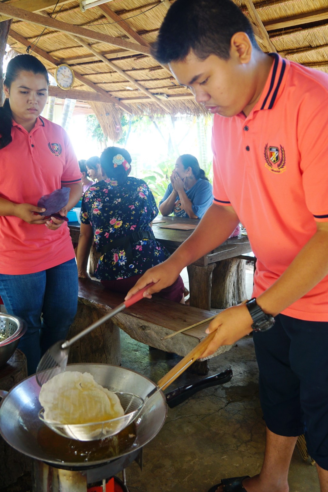“เราได้ไปสำรวจชุมชนแต่ละชุมชน เรารู้แล้วว่าแต่ละชุมชนมีของดีอะไรบ้าง แต่ละหมู่บ้านมีอาหาร มีภูมิปัญญาอะไรให้แต่ละหมู่บ้าน มาแนะนำเสนอกันมาแลกเปลี่ยนเรียนรู้ และมาจบที่ขนมหูช้าง เพราะเรารู้สึกว่าขนมนี้คนส่วนใหญ่ไม่รู้จักเลย จึงไปค้นหาคำตอบพบว่ามีแค่เฉพาะอำเภอปักธงชัยอำเภอและอำเภอครบุรี ก็เลยมีการฝึกทำ มีผู้รู้มาสอน และยังได้นำไปเผยแพร่นอกหมู่บ้าน เช่น ในตัวเมืองโคราช และยังเคยนำไปให้คนจังหวัดเพชรบุรีได้ชิมด้วย ทุกคนบอกว่าไม่เคยเห็นมาก่อน รู้สึกภูมิใจมากที่บ้านเราก็มีของดี และการการได้ทำกิจกรรมทำให้มีความมั่นใจกล้าแสดงออก สามารถนำไปใช้ในชีวิตประจำวัน เช่น ได้เป็นผู้นำพูดหน้าเสาธงของโรงเรียน และยังได้ทำประโยชน์ให้ชุมชนบ้านเกิดของตนเองด้วย ”