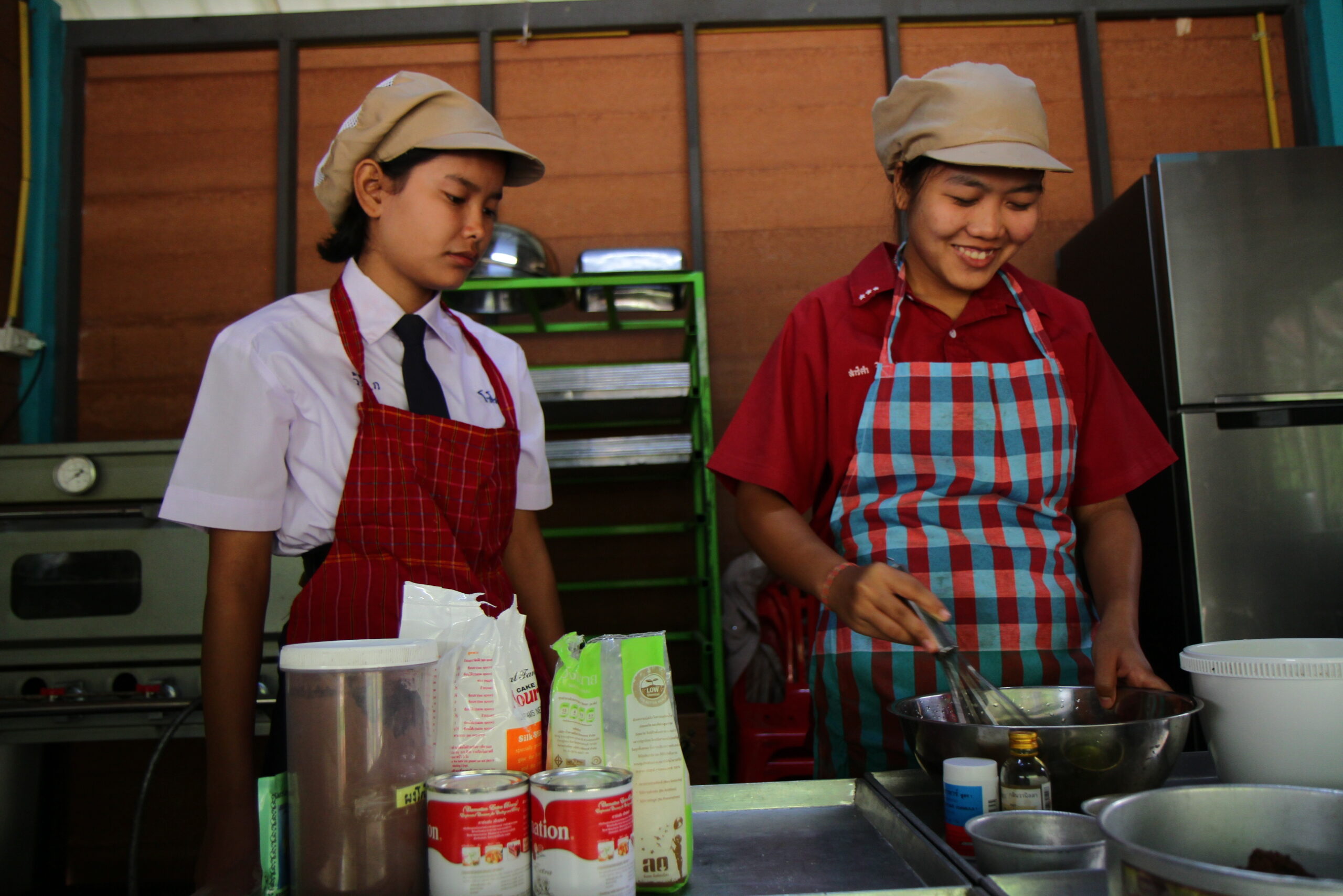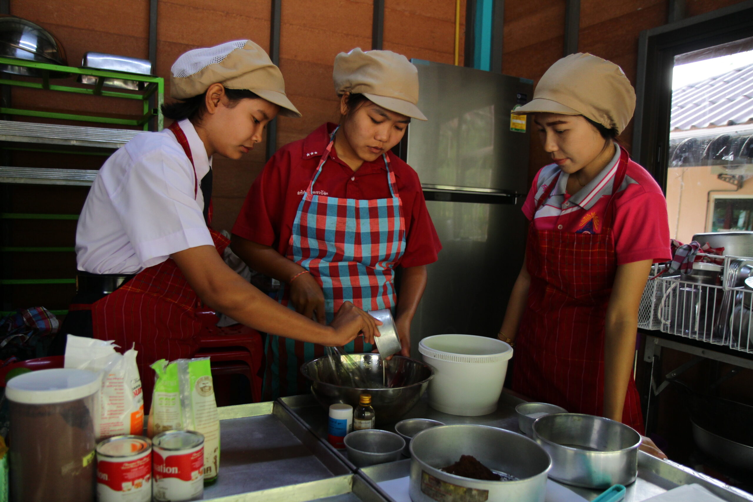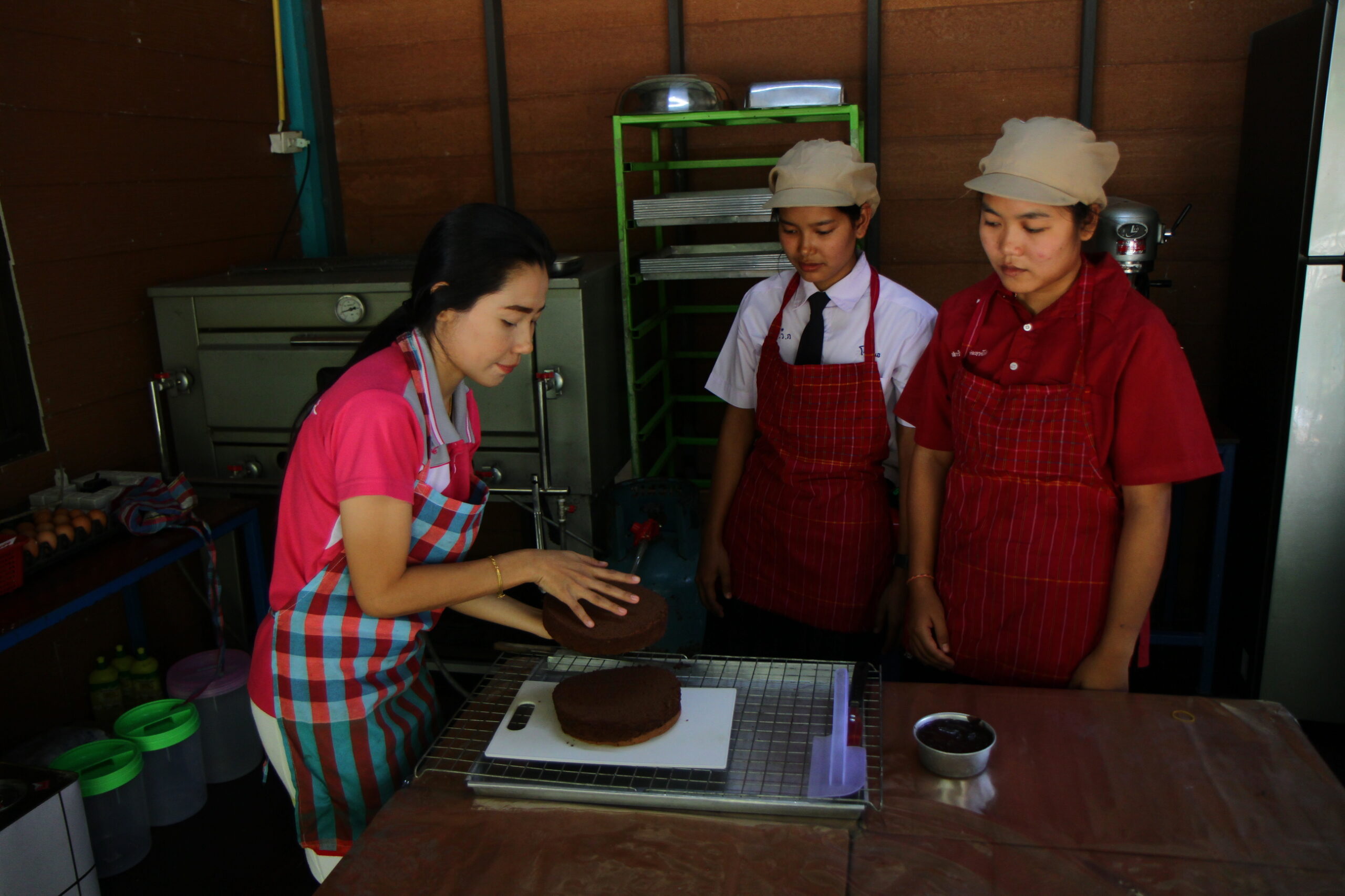 ขณที่ น.ส.นาราภัทร รัตนหงษ์ษา “ครูน้องเล็ก” ครูผู้รับผิดชอบสอนการทำเบเกอรี่ กล่าวถึงการสอนทำเบเกอรี่ให้กับเด็กๆ ว่า แบ่งกิจกรรมเป็น 2 เทอม โดยเทอมแรกจะเป็นการสอนทำขนมไทย เช่น ขนมต้ม ขนมชั้น ดอกจอก วุ้น และเทอมต่อมาจะเป็นเบอเกอรี่ซึ่งเน้นเป็นพวกเค้กและคุกกี้ เด็กจะได้ฝึกตั้งแต่การเตรียมวัสดุ อุปกรณ์ ทำด้วยตัวเองทุกขั้นตอน เมื่อทำจนเก่ง รสชาติอร่อย ก็จะต้องส่งโครงการอาหารกลางวันเดือนละ 2 ครั้ง หรือส่งตามออเดอร์ที่มีผู้สั่งไว้ บางส่วนก็จะเอามาขายให้กับเพื่อนนักเรียนในช่วงกลางวัน