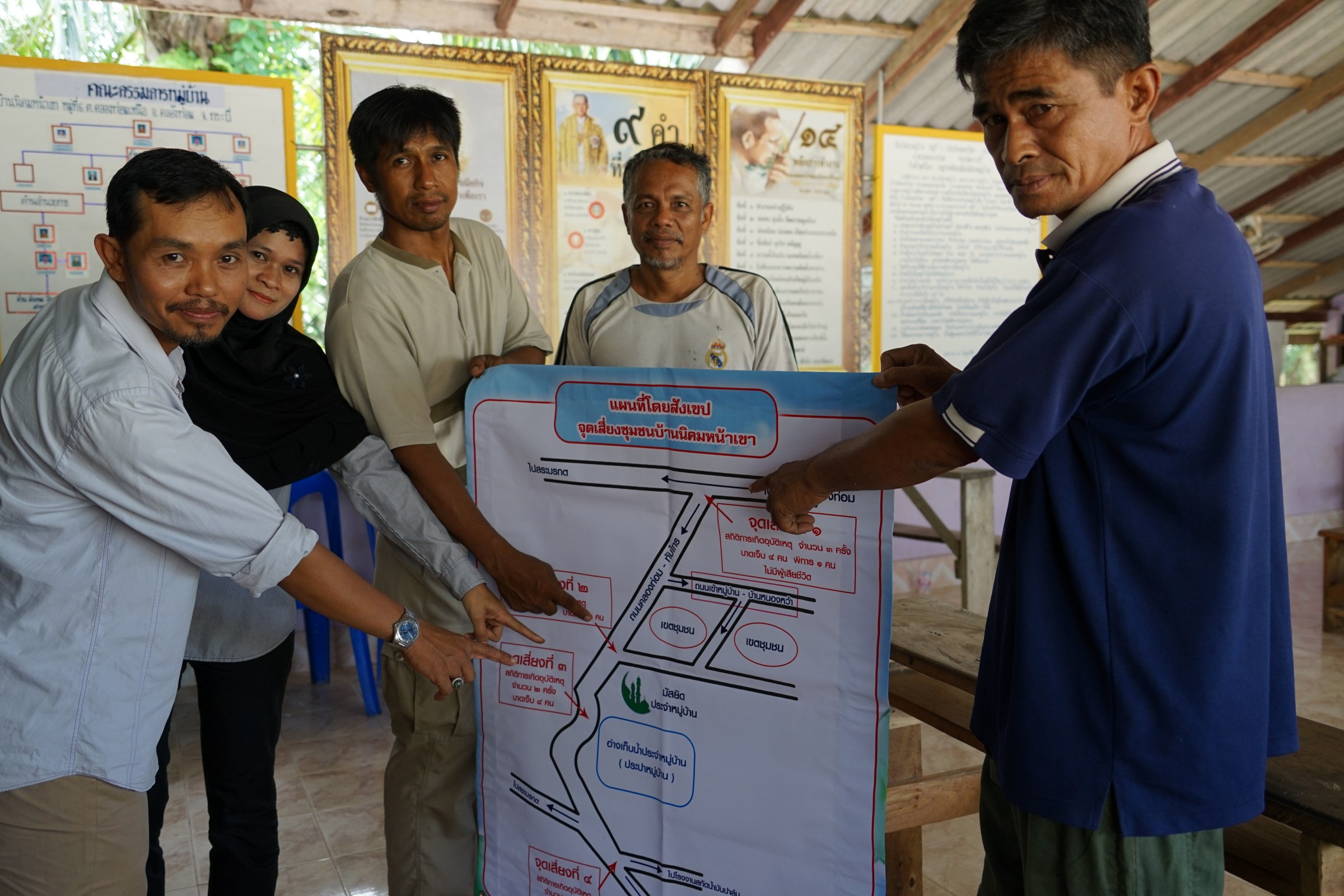 คณะทำงานของทั้ง 2 พื้นที่จึงได้เริ่มจัดทำแบบสำรวจและเก็บรวบรวมข้อมูลอุบัติเหตุที่เกิดขึ้นในชุมชนในช่วง 2 ปีที่ผ่านมาจากงานอุบัติเหตุโรงพยาบาลคลองท่อม นำข้อมูลที่ได้มาวิเคราะห์และประมวลผล ลงพื้นที่สำรวจเส้นทางต่างๆ ชุมชน เพื่อจัดทำแผนที่ชุมชน โดยปรับปรุงแผนที่ทางอากาศ Google Earth ของหมู่บ้านที่มีอยู่เดิมมาใช้ในการเก็บข้อมูลถนน และสถานที่สำคัญชุมชน มีการจัดเวทีคืนข้อมูลให้ชุมชนรับทราบปัญหาเพื่อร่วมกันวางแผนแก้ไข จัดกิจกรรมพัฒนาปรับปรุงจุดเสี่ยงในหมู่บ้าน จัดเวรยามเฝ้าระวังอุบัติเหตุตามจุดเสี่ยงต่างๆ ในช่วง 7 วันอันตรายเทศกาลปีใหม่ และในเทศกาลสงกรานต์ปี 2560 ที่ผ่านมาจนแทบจะไม่มีอุบัติเหตุเกิดขึ้นบนถนนและจุดเสี่ยงของทั้ง 2 ชุมชนเลย