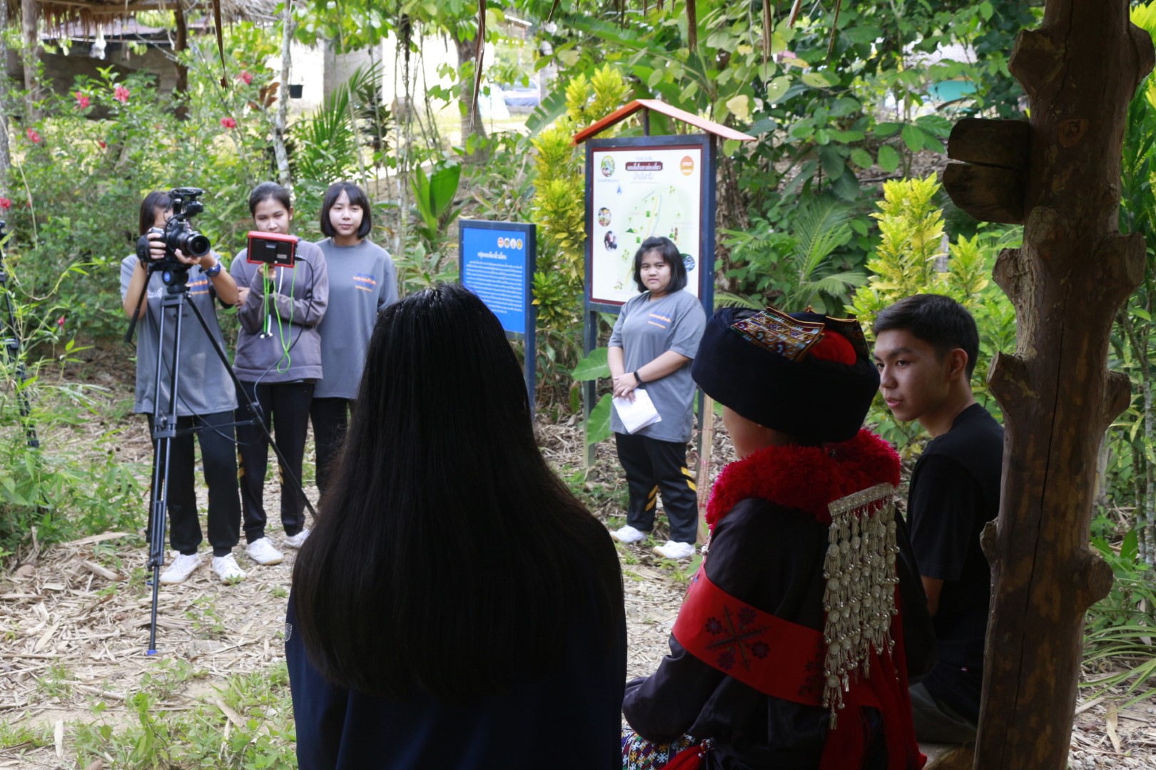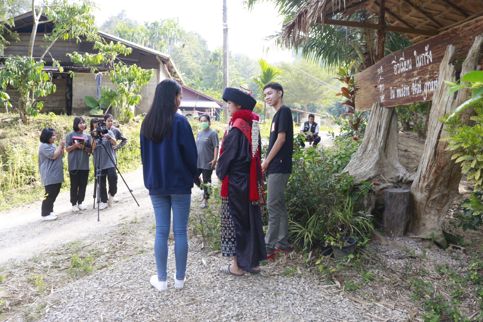 “ชุดนี้หนักและหนามากค่ะ ซักไม่ได้ พอใส่แล้วค่อนข้างร้อนมาก” นางสาวสุพิชชา โมกสากุล หรือ น้องเหมย ผู้เป็นลูกหลานอิ่วเมี่ยนบ้านในกรังซึ่งมีหน้าที่เป็นผู้ประสานงานระหว่างทีมถ่ายสารคดีกับชาวบ้านในชุมชนอธิบาย วันนี้น้องเหมยแต่งชุดประจำเผ่าสวยงามเพื่อทำหน้าที่เป็นแหล่งข่าวของสารคดีด้วย โดยเข้ากล้องถ่ายทำกับบรรดาผู้อาวุโสของชุมชนเล่าประวัติความเป็นมาของชุมชนอิ่วเมี่ยนบ้านในกรัง
