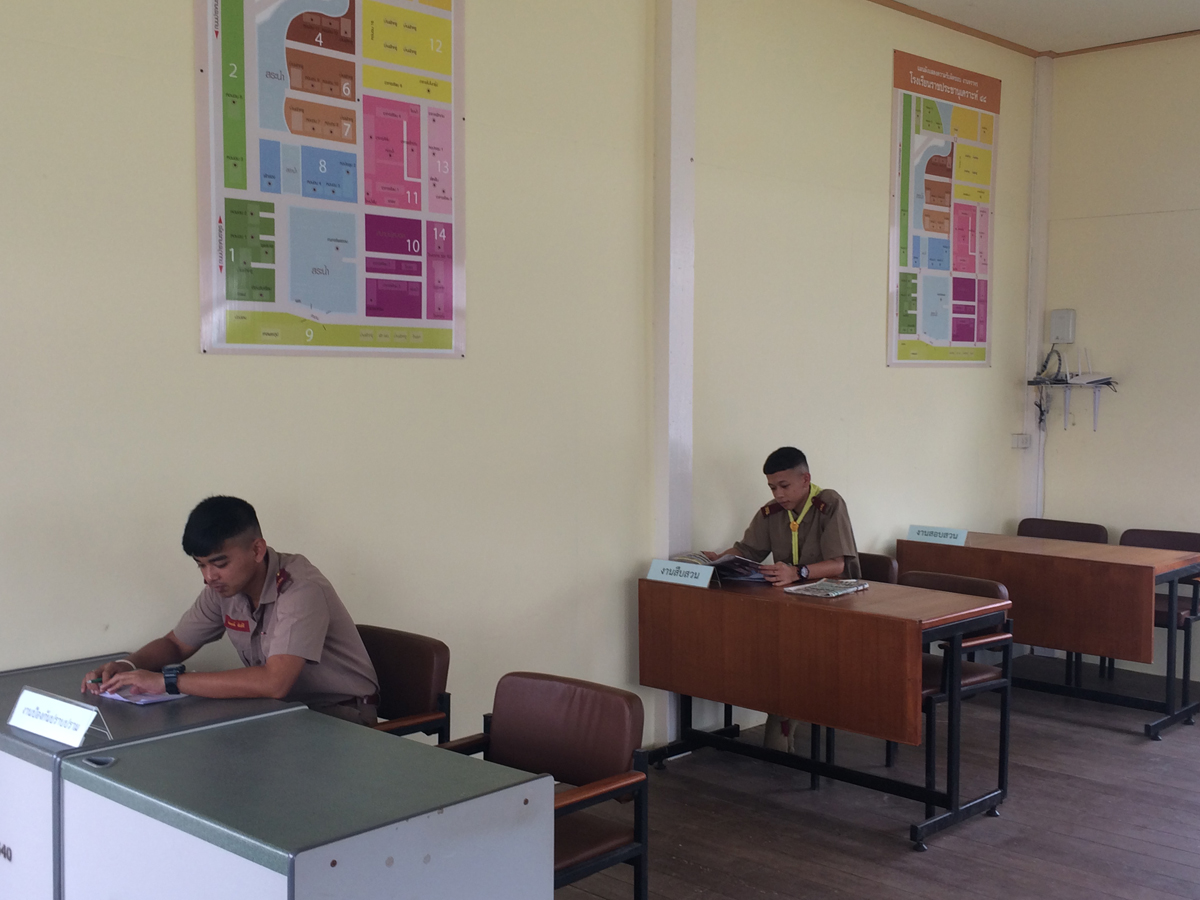 น้องเฟิร์ส บอกว่า สาเหตุที่เข้ามาทำงานตรงนี้ เพราะเห็นว่าทางโรงเรียนเปิดรับสมัครคนอยู่ ประกอบกับอนาคตอยากเป็นตำรวจ ก็เลยลองมาทำดู พอเข้ามาแล้วก็ได้ฝึกจริงๆ ตื่อนตั้งแต่ ตี 5 มาวิ่งออกกำลังกายก่อนแยกย้านไปเรียนประจำวัน พอถึง 5 โมงเย็นก็ต้องมารวมตัวฝึกกันอีก และแยกการอบรมตามสายงานการรับผิดชอบของตนเอง ส่วนผมอยู่ฝ่ายตำรวจจราจร คอยอำนวยความสะดวกและจัดการการจราจรภายในโรงเรียน มีสมาชิกด้วยกัน 5 คน ตอนนี้มีระเบียบวินัยมากขึ้น เพราะต้องทำตัวให้เหมาะสม