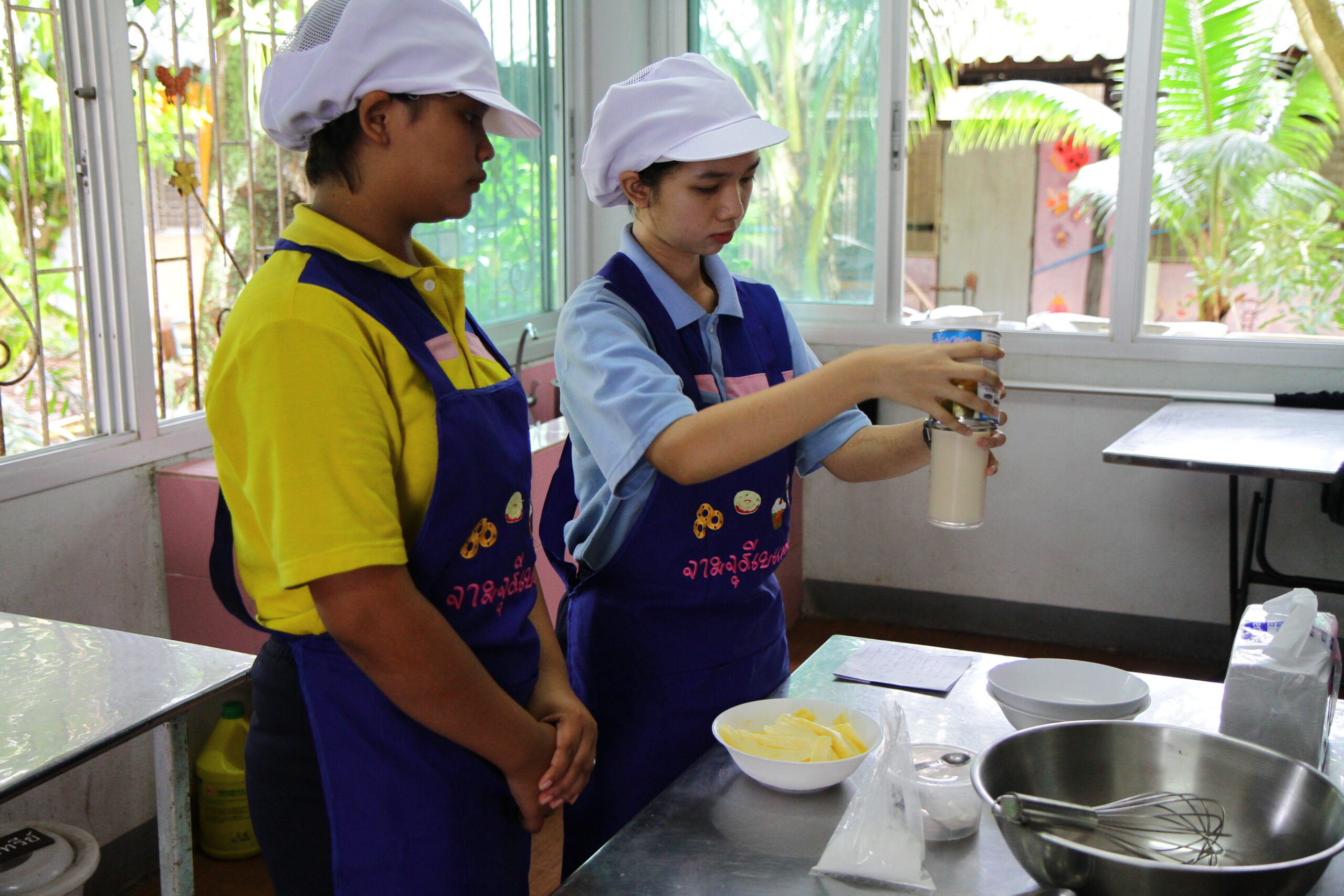 ครูสุดใจ เล่าถึงกระบวนการทำเบอเกอรี่ของน้องๆ ว่า เริ่มเตรียมแป้งในช่วงเย็นก่อน เพื่อที่เช้าอีกวันจะมาช่วยกันทำเบอเกอรี่ให้เสร็จในเวลา 8.45 น. ก่อนขึ้นชั้นเรียน เป็นกิจวัตรที่เชฟสุขจากขนมอบจะต้องทำเป็นกิจวัตร