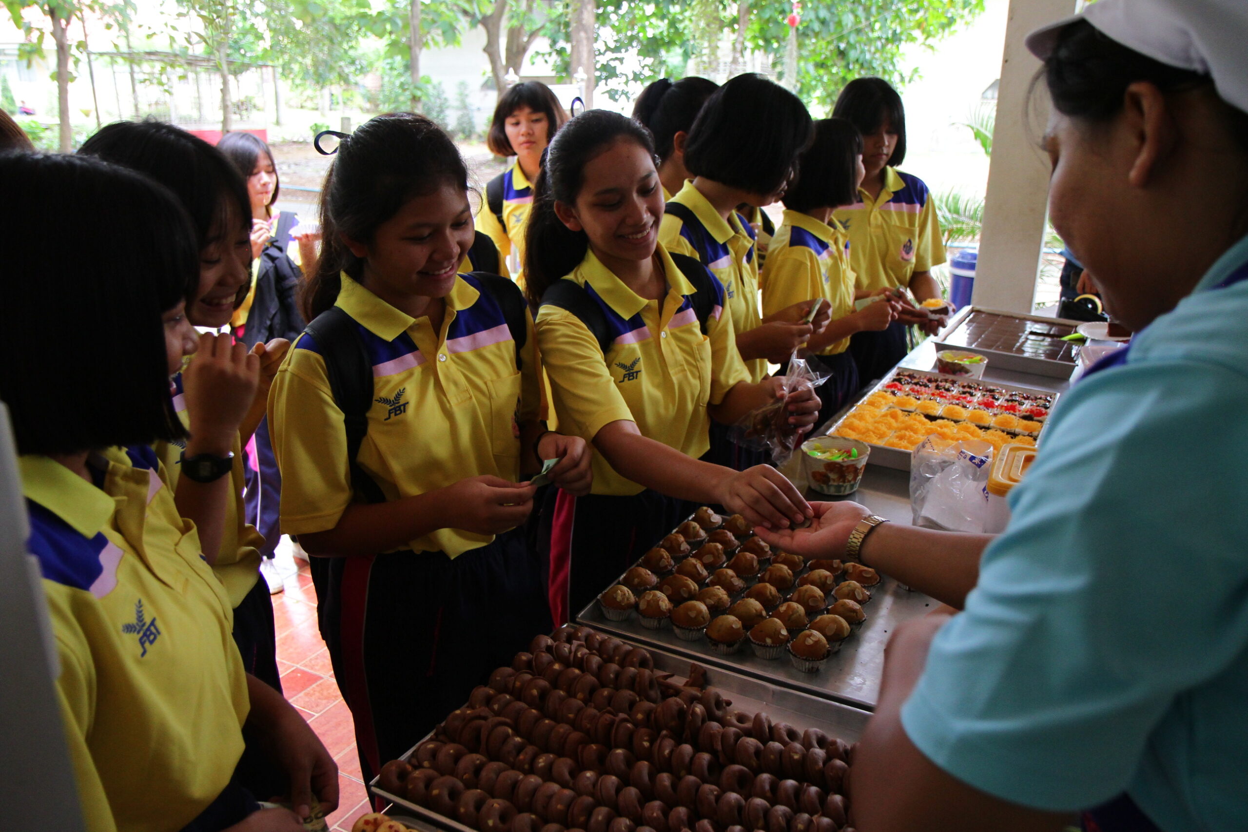 ที่ต้องรีบเพราะว่าเปิดขายแค่เพียงช่วงพักเที่ยงเท่านั้น และมีจำกัดหมดแล้วหมดเลย หลังได้มาคนละชิ้นสองชิ้นก็จะมาจับกลุ่มนั่งกินใต้ร่มไม้ด้วยความเอร็ดอร่อยก่อนที่แยกย้ายเข้าชั้นเรียนในภาคบ่ายต่อไป