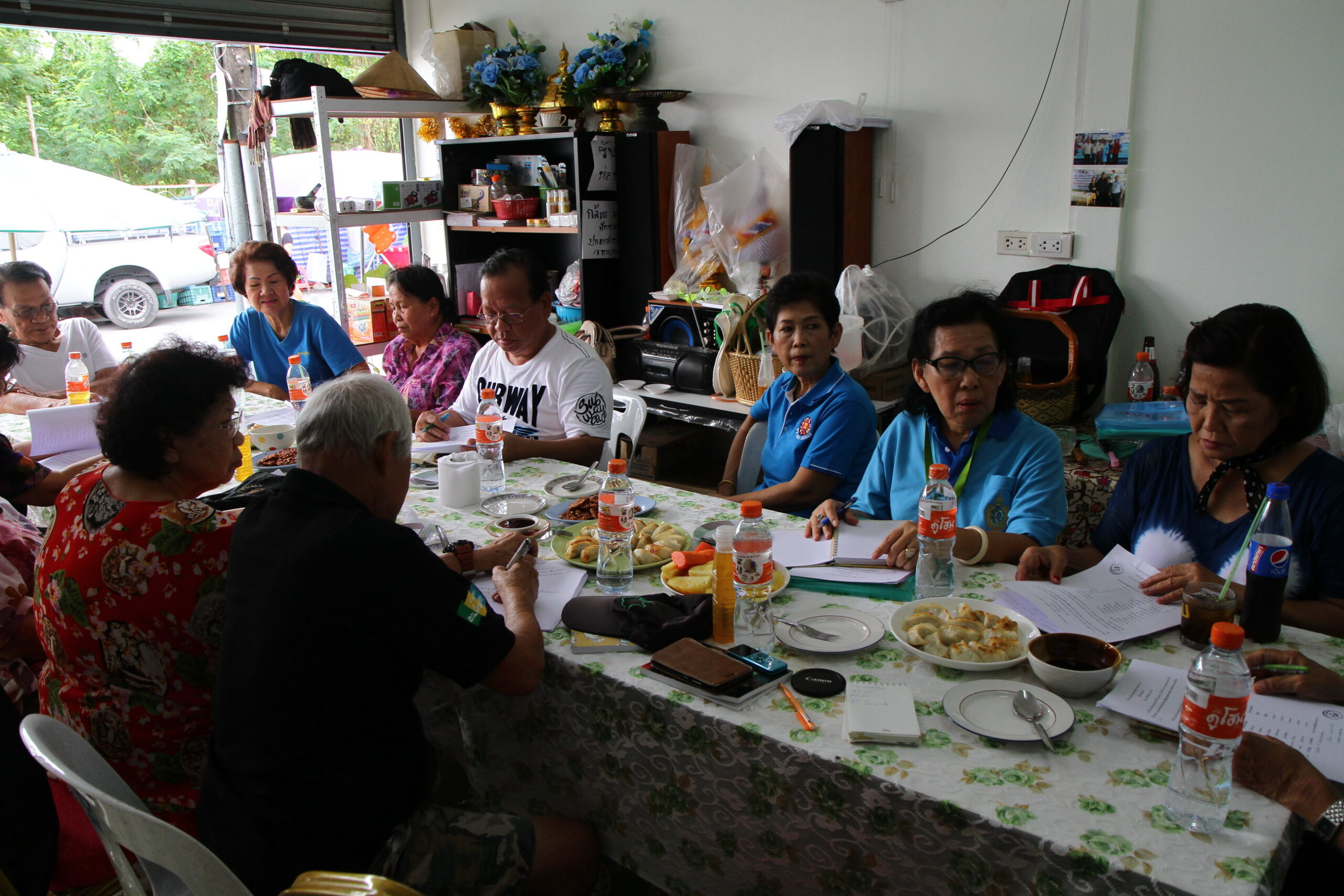 การดำเนินงานชมรมฯ ทำอะไรบ้างนั้น ป้าลำยอง บอกว่า ถือเป็นข้อตกลงของสมาชิกทุกคนว่า ทำอะไรก็ได้ให้มีความสุข ทั้งกาย ใจและปัญญา ทุกเดือนเหล่าผู้สูงอายุในหมู่บ้านจะต้องมานั่งคุยกันว่าจะทำอะไรกับบ้างในวันต่อไป และให้ถือเป็นมติของชมรม แต่หลักๆ คือ การพบปะสังสรรค์ การทำบุญไหว้พระร่วมกัน การออกกำลังกายเช้า-เย็น