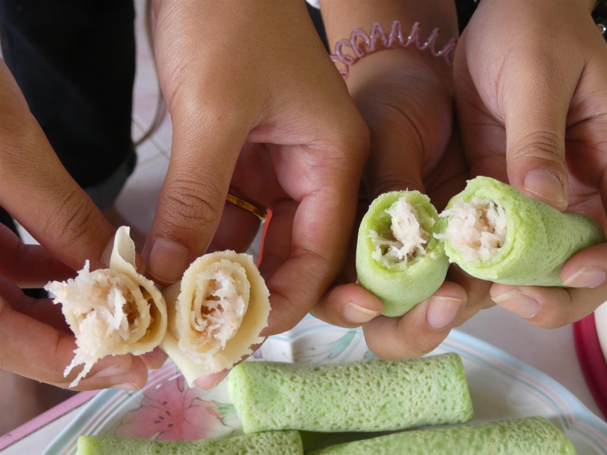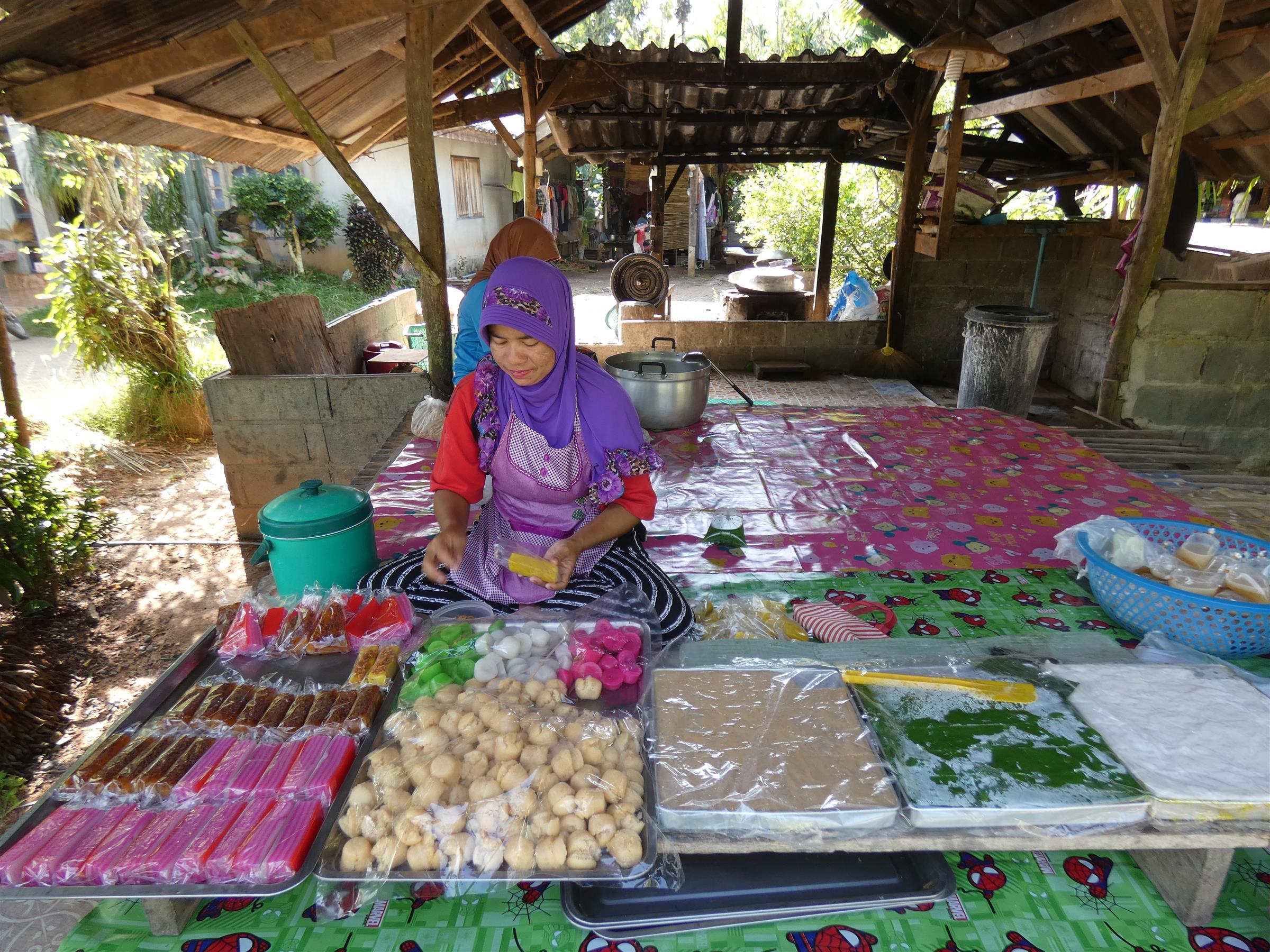 “การที่เราได้ไปเดินตลาดไปหาซื้อขนมมาทานกันนั้น มันก็ทำให้คนในชุมชนมีความสุขจากการได้ออกไปพบปะพูดคุยกัน หรือเวลานั่งกินกาแฟและกินขนมพื้นบ้านก็ได้พูดคุยกัน ขนมจึงเป็นเหมือนเครื่องมือที่ทำให้คนได้มาพบปะพูดคุยกัน และการที่เราพาเด็กๆ เข้าไปเรียนรู้การทำขนมต่างๆ กับในผู้ใหญ่ในชุมชนก็ทำให้เกิดการลดช่องว่างระหว่างวัยได้ด้วย” นัส และ รถ ช่วยกันอธิบายข้อดีของกิจกรรมต่างๆ ที่เกิดขึ้นในชุมชนของพวกเขา