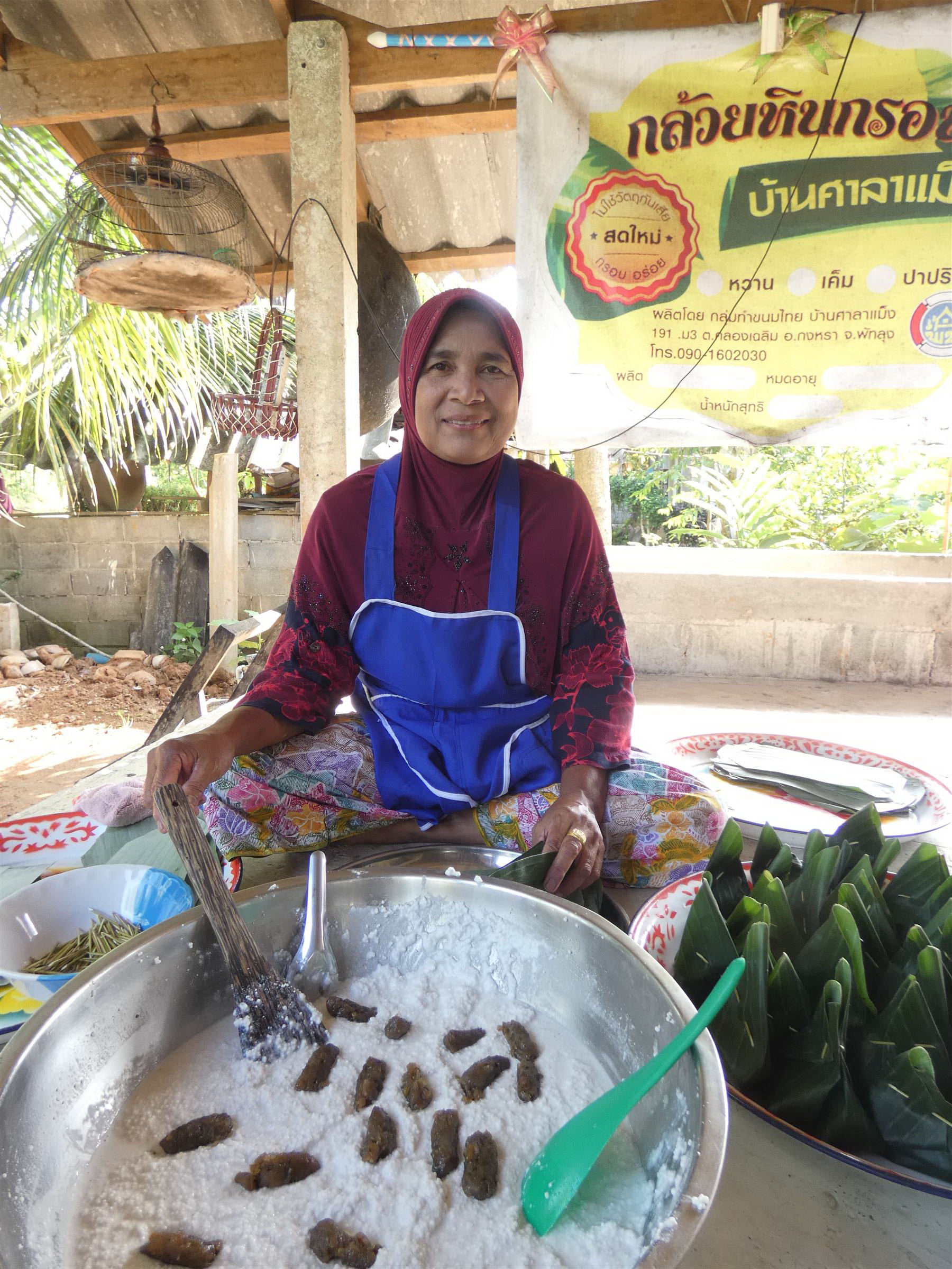 น.ส.นัสรินทร์ หรีมหนก หรือ “นัส” นักเรียนชั้นมัธยมศึกษาปีที่ 6 โรงเรียนสตรีพัทลุง เล่าว่า การได้เข้ามาทำงานในโครงการนี้นอกจากทำให้รู้จักขนมแปลกๆ มากขึ้น ยังทำให้ได้เรียนรู้สิ่งต่างๆ มากมาย เช่น กระบวนการทำงานอย่างมีระบบและการทำงานเป็นทีม แล้วก็ได้เรียนรู้สิ่งใหม่ๆ ก็คือ การฝึกสัมภาษณ์ การลงพื้นที่ชุมชน และการเก็บข้อมูลต่างๆ