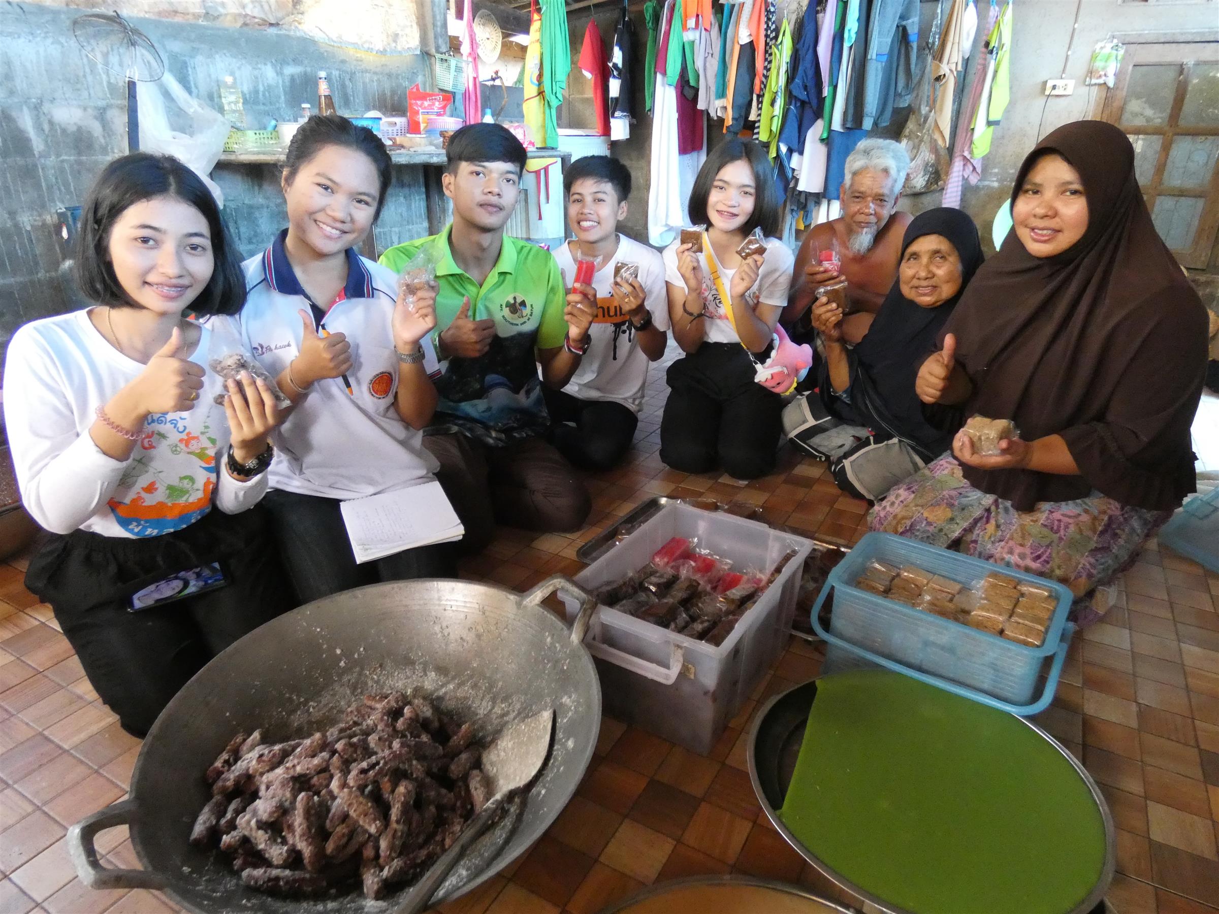 ด้าน “รถ” น.ส.กิตติมา ชุมพรัต นักศึกษาชั้น ปวช.ปี 3 วิทยาลัยเทคนิคพัทลุง เล่าว่า เมื่อลงพื้นที่สำรวจขนมพื้นบ้านแล้ว หลังจากนั้นก็จะเอาข้อมูลมาเรียงลำดับความสำคัญ ว่ามีขนมอะไรบ้างที่กำลังจะหายไป หรือขนมอะไรที่ยังพบเจอหากินได้ง่ายในท้องถิ่น เพื่อที่จะได้ร่วมกันหาแนวทางการอนุรักษ์ขนมพื้นบ้านเหล่านี้ให้คงอยู่กับชุมชนของเราต่อไป