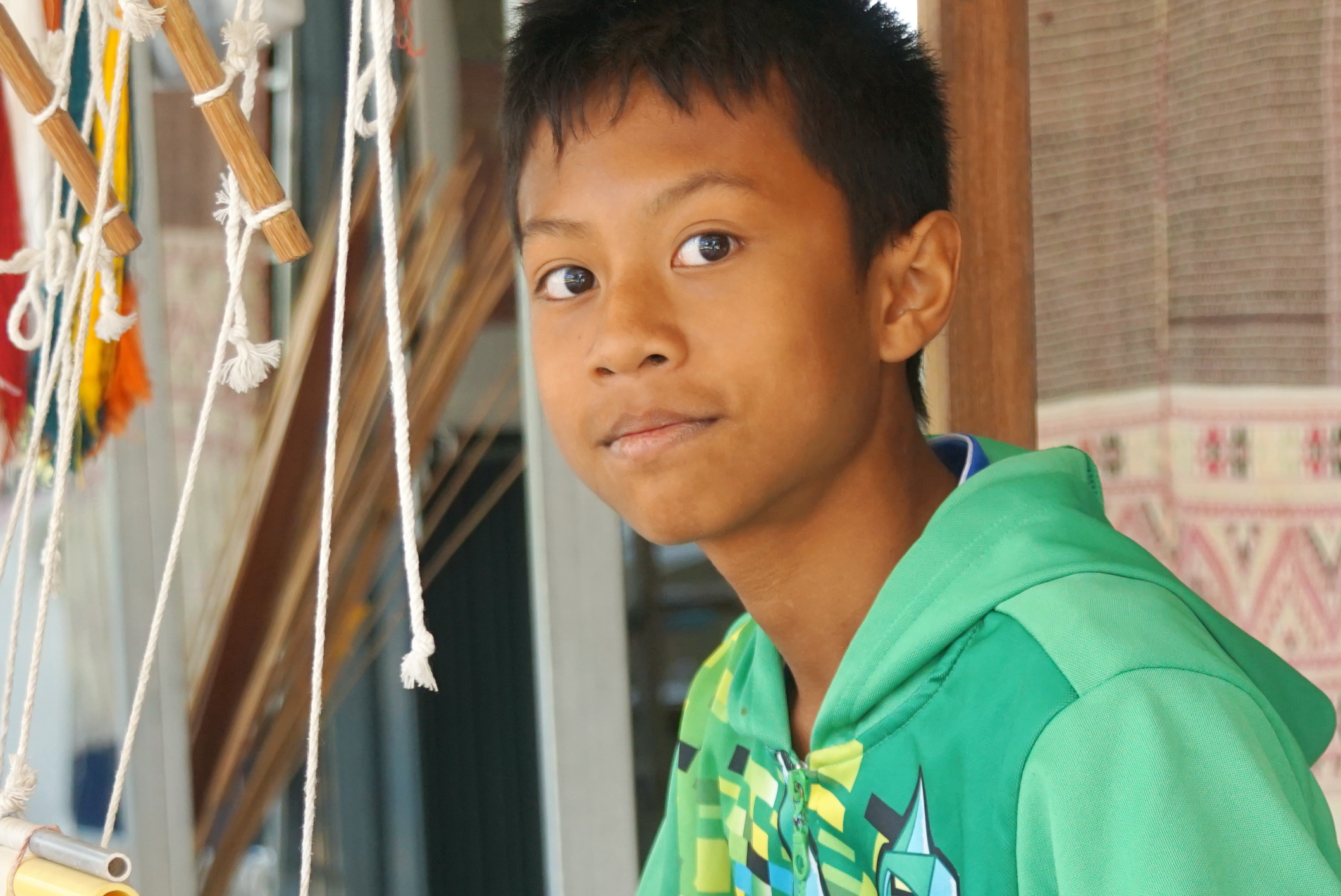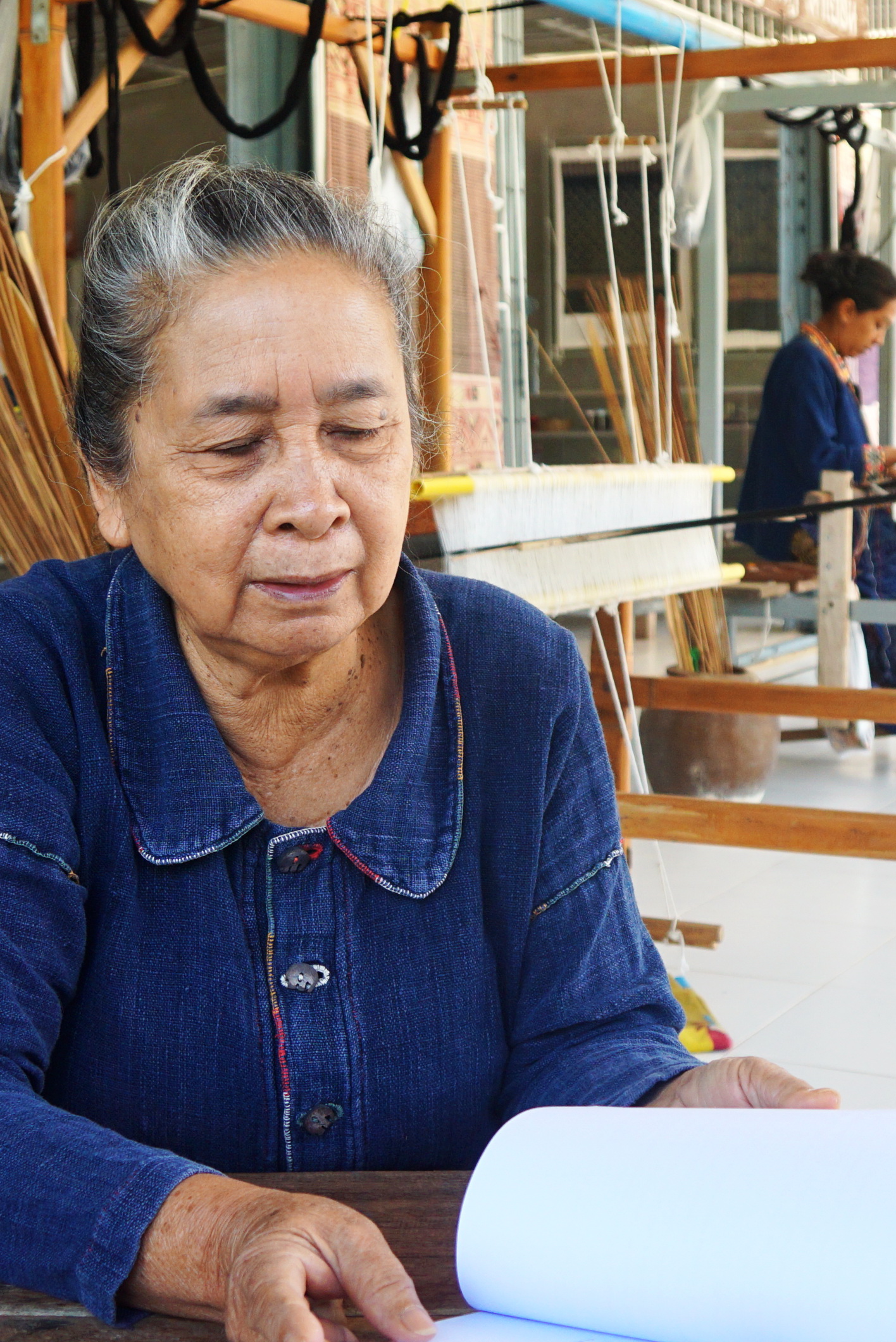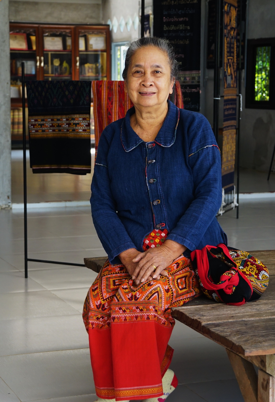“กับเด็กๆ ป้าก็สอนตามประสาเด็กๆ ให้เขาได้เล่น ให้รู้จักก่อน ไม่ได้คาดหวังว่าจะต้องได้อย่างนั้นอย่างนี้ อย่างหลานอยู่ชั้น ป.5 (ธนกฤต) ม้วนด้ายกรอด้าย เอาด้ายขึ้นกี่ ดึงหูกได้ นี่คือจบการเล่น ตอนนี้เขาเริ่มเป็นแล้วก็ช่วยสอนรุ่นน้องได้ ในรุ่นนี้ที่เห็นมีแววก็หลายคนอยู่นะ” ป้าจำปี ครูภูมิปัญญาเจ้าของรางวัลระดับอาเซียน กล่าว