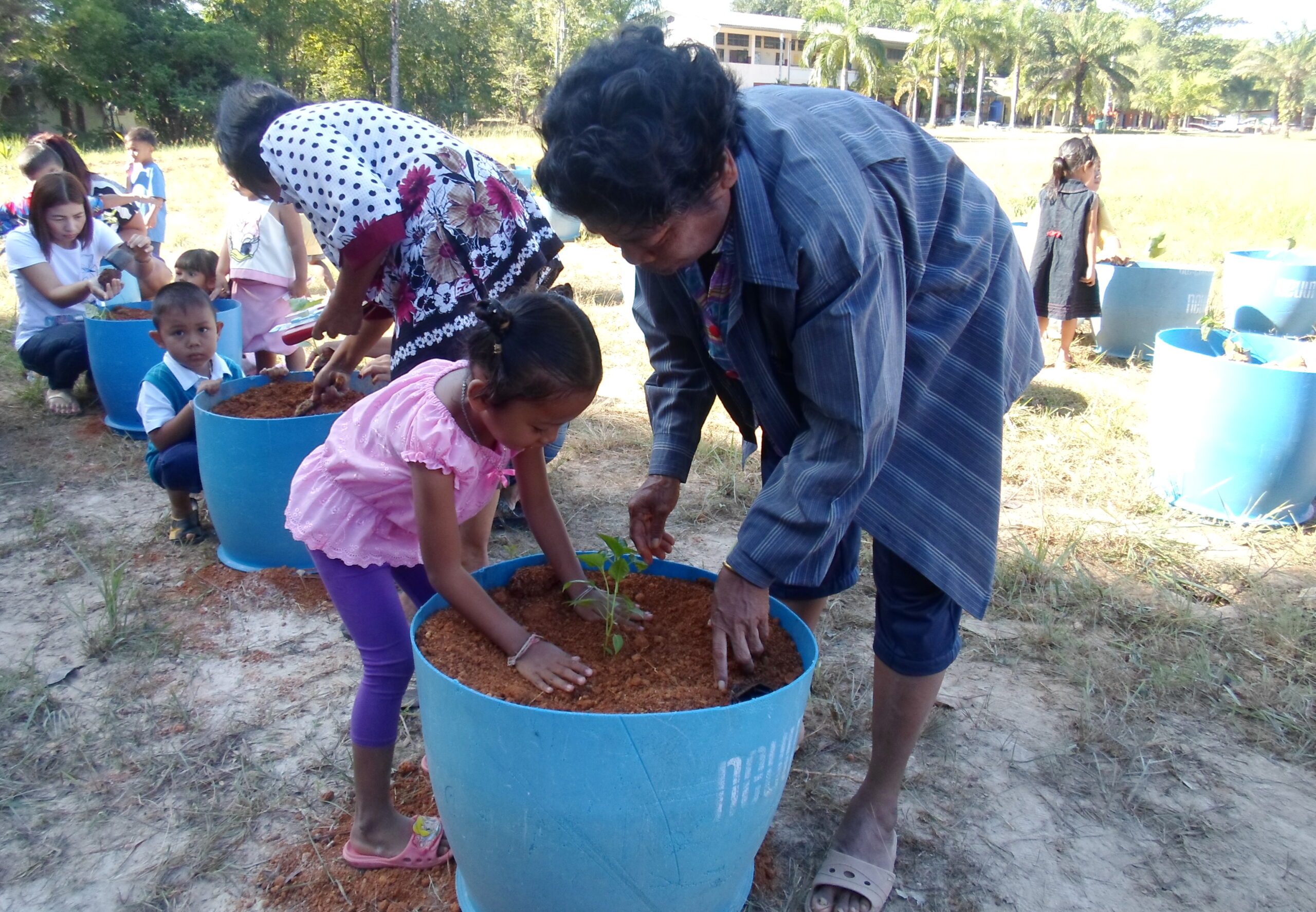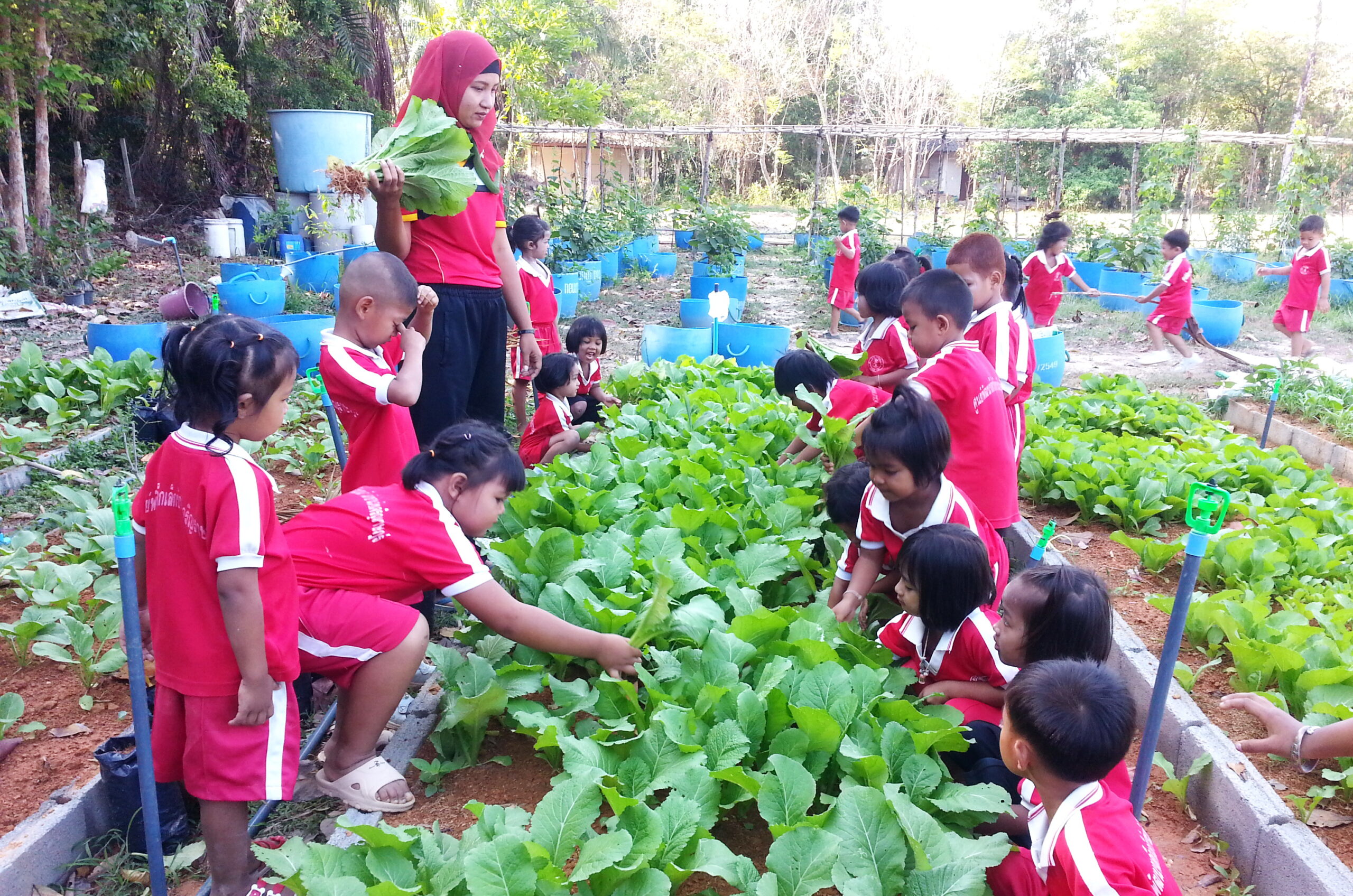 “ผู้ปกครองส่วนใหญ่ก็มุ่งทำมาหากิน ไม่มีเวลามาปลูกผักไว้กินเองทั้งๆที่พื้นที่ในบ้านสามารถปลูกผักได้ เพราะเอาความสะดวก ซื้อตามตลาด เราไม่รู้ที่มาของผักพวกนั้นเลย แล้วที่นี่ก็มีผักพื้นบ้านเป็นทุนเดิมอยู่แล้ว เราเลยมาคิดกันว่าจะทำอย่างไรให้เด็กๆได้กินอาหารที่ปลอดภัย แต่ก็ไม่ใช่ปลอดภัยเฉพาะที่โรงเรียนเท่านั้น เราจึงชักชวนผู้ปกครองให้ปลูก จะได้มีผักปลอดภัยทำกินที่บ้านด้วย” หัวหน้าศูนย์พัฒนาเด็กเล็กฯ กล่าว