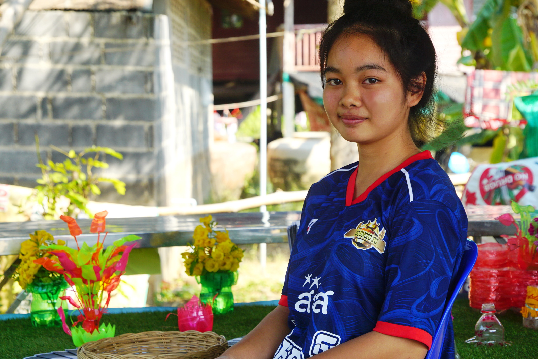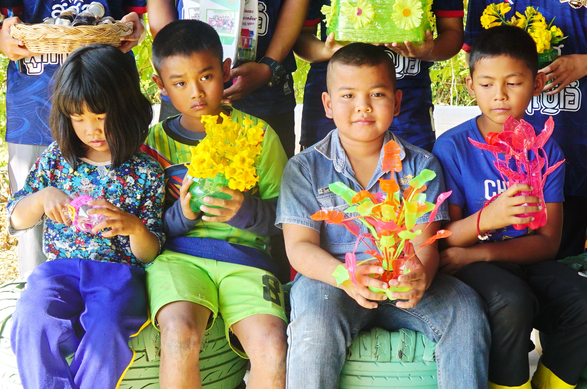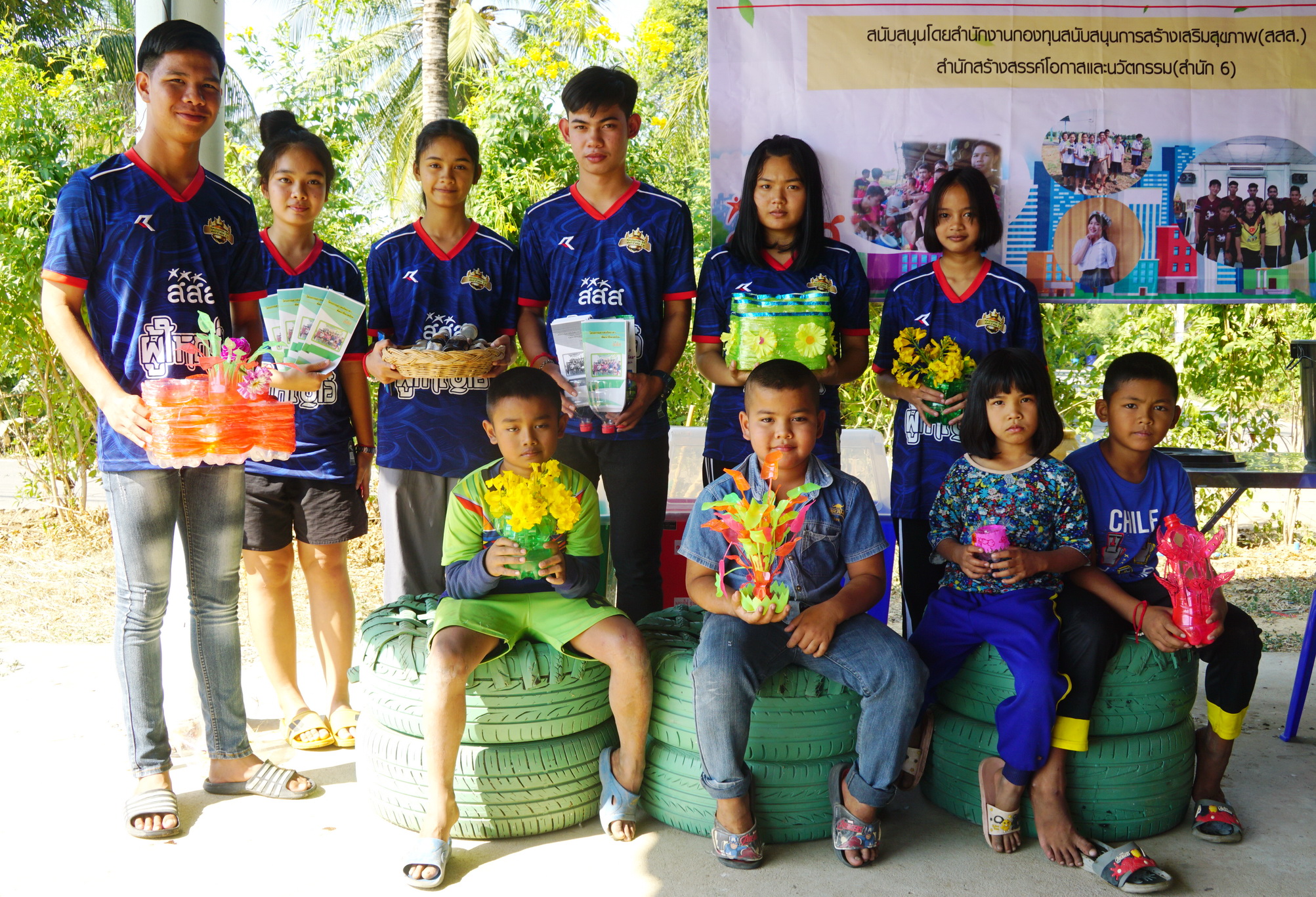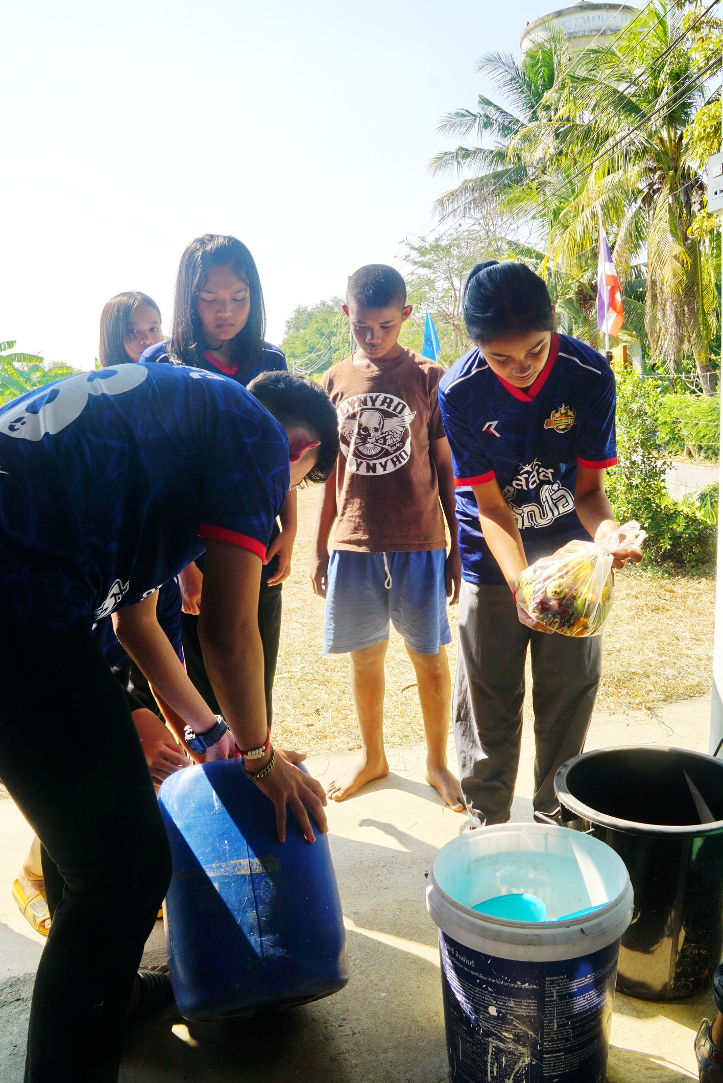 “เด็กกลุ่มนี้ส่วนใหญ่ชอบเล่นกีฬา เราใช้กีฬานำเด็กให้เข้ามาร่วมโครงการเชื่อมโยงกันไป เรื่องการคัดแยกขยะเราทำทั้งหมู่บ้าน เวลาผู้ปกครองมา เด็กก็จะตามมารับรู้เรื่องของหมู่บ้านไปด้วย ทุกบ้านที่เข้าร่วมโครงการต้องมีถังหมักปุ๋ยชีวภาพ เราทำงานร่วมกับกลุ่ม อสม. โดยทาง อบต.ชัยฤทธิ์ สนับสนุนถังหมักและวัสดุอุปกรณ์ต่างๆ ทุกครอบครัวจะมาเรียนทำปุ๋ยหมักกับเรา จะมีการดูแลและติดตามงานเป็นกลุ่มๆ ทำให้หมู่บ้านมีปริมาณขยะลดลง” ผู้ใหญ่กัญญารัตน์ กล่าว