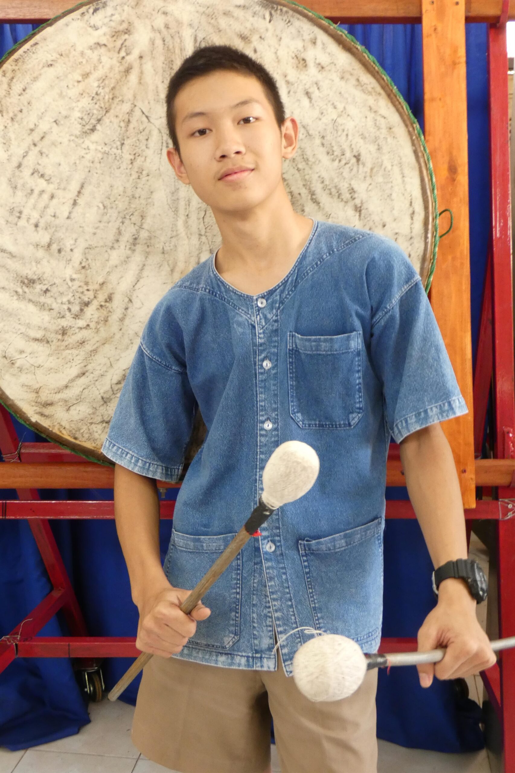 “กลองพื้นบ้านของเราสามารถประยุกต์เล่นกับวงสตริงได้ทั้งหมด ซึ่งแต่ละประเภทก็จะมีวิธีการตีที่แตกต่างกันไป แต่กลองเกือบทั้งหมดจะทำหน้าที่ในการให้จังหวะเหมือนกัน โดยส่วนตัวแล้วผมชอบตีกลองสิ้งหม้อง เพราะจังหวะมันสนุกสนานเร้าใจ ส่วนมากจะเอาไปใช้แห่ในงานประเพณีต่างๆ เพราะมันก็คือกลองยาวของภาคกลางนั่นเอง” น้องฟลุ๊ก มือกลองกล่าว
